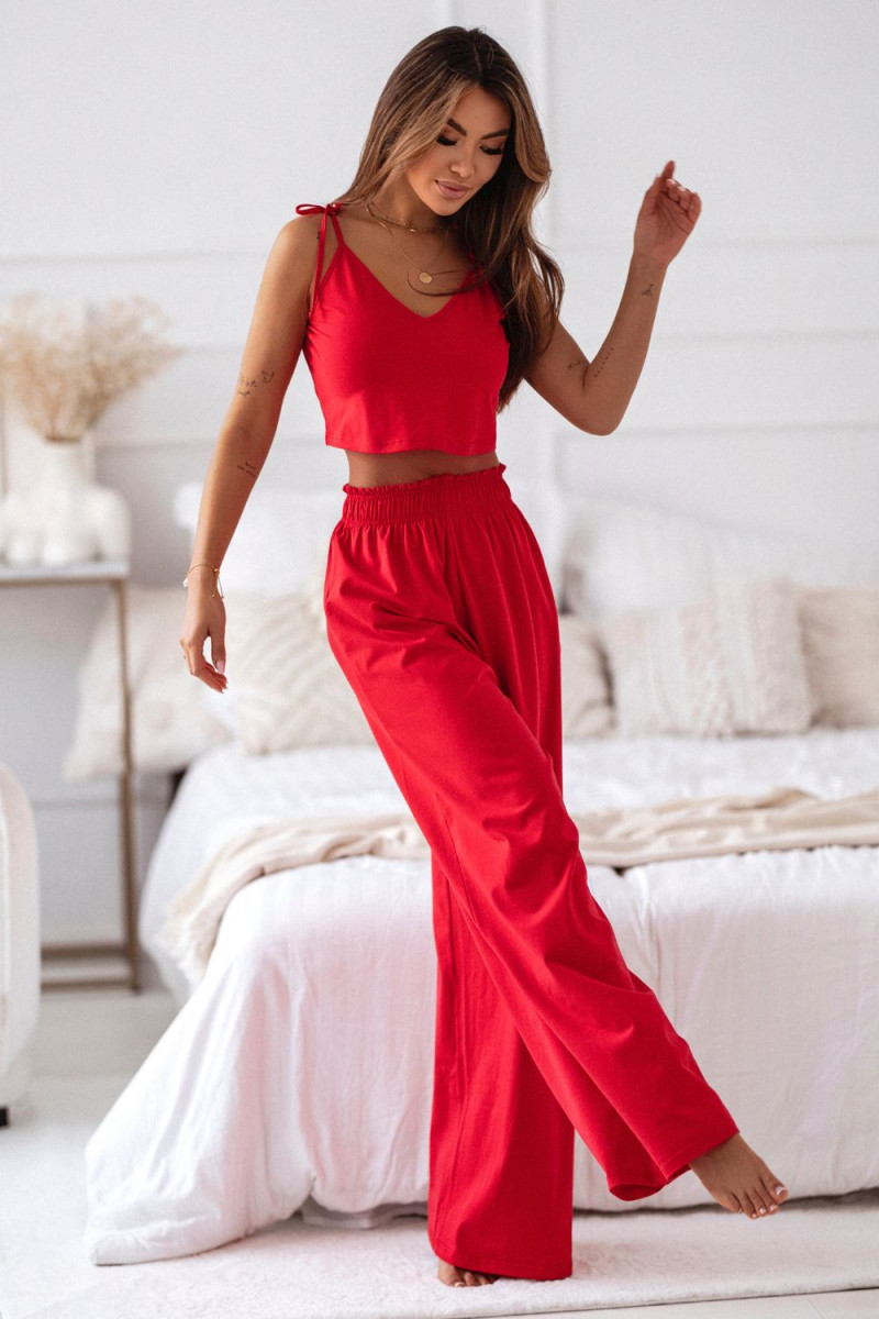 Extremely impressive and comfortable set for sleeping and more.... Komplektas consisting of a strapless shirt and long pants, sewn from natural cotton, soft to the touch and pleasant to your skin. The elastic at the waist extends up to 10 cm. The whole thing is very comfortable, pleasant to wear ? you will not want to take it off! The set designed and sewn in Poland.