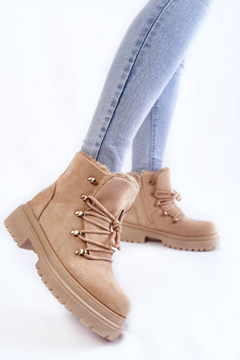 iš zomšos Aulinukai batai smėlio spalvos Bellita