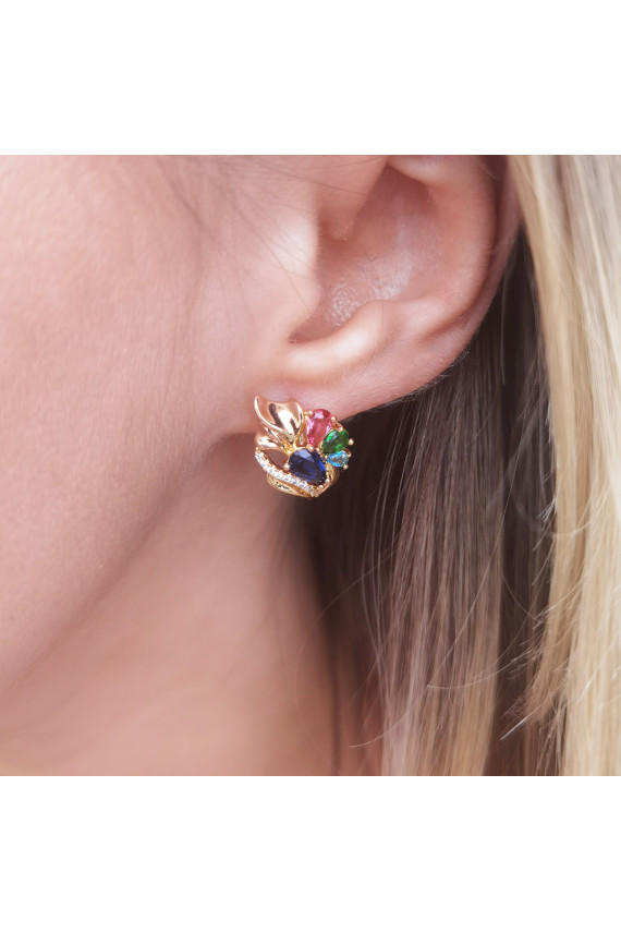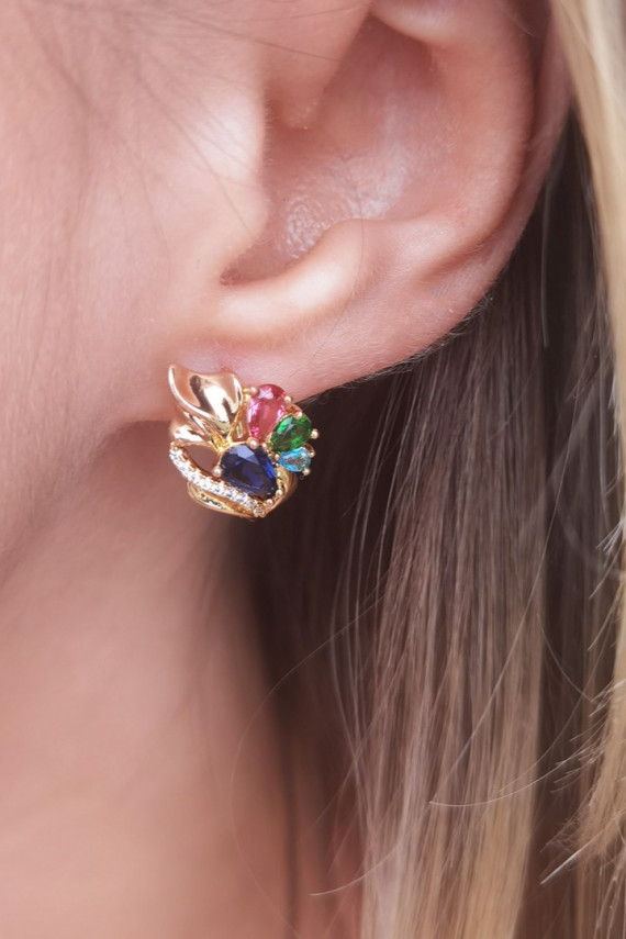 Auskarai iš nerūdijančio plieno padengti 18 karatu auksu. Elegantiško stiliaus, puošnūs. Spalva: aukso. Matmenys: 1,5 x 1,2 cm