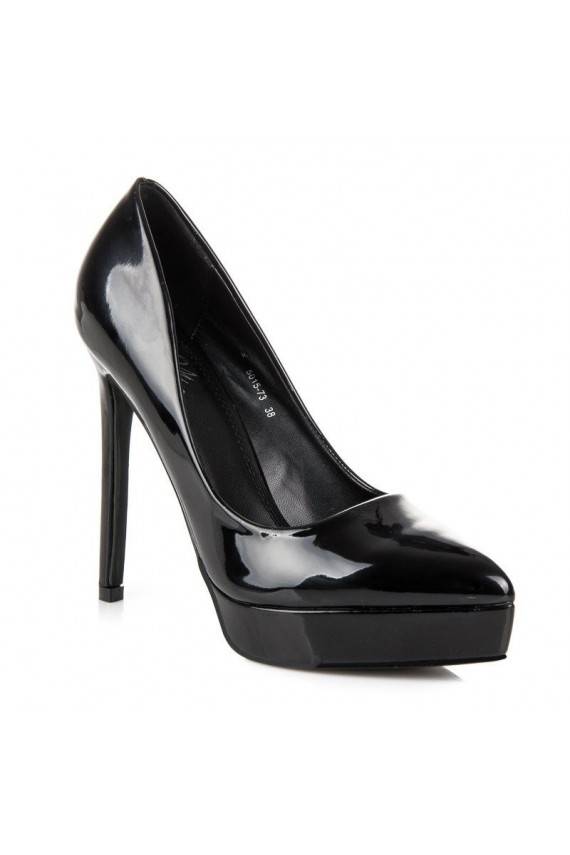 Juodos spalvos lakuoti Stiletto bateliai su platforma ties pirštais