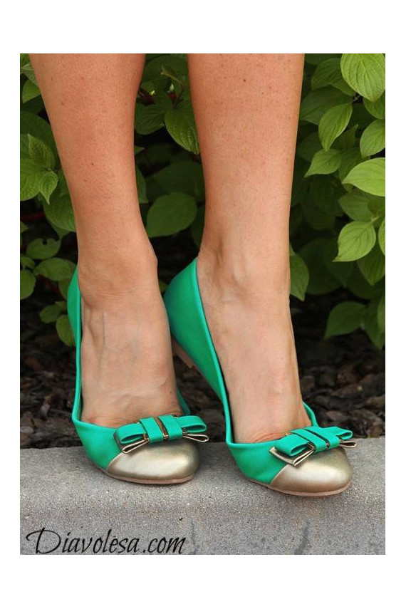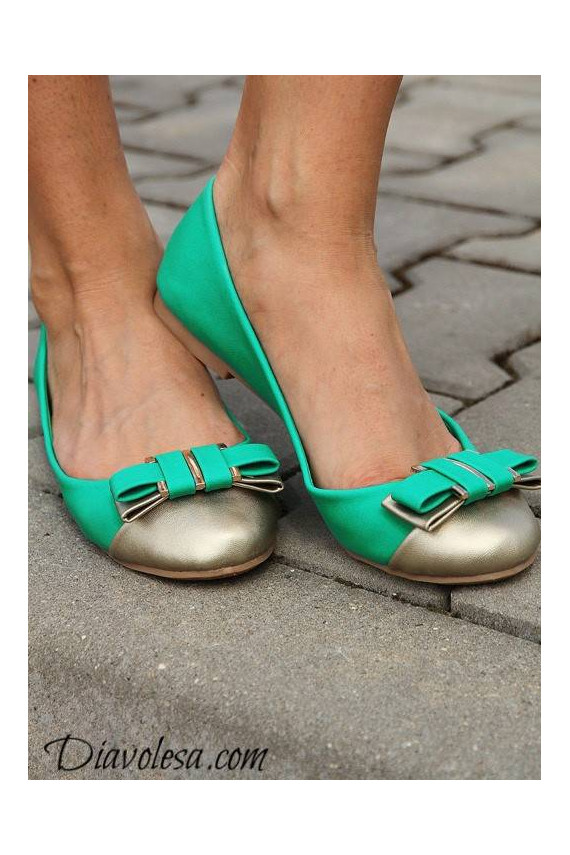 Mėtinės spalvos balerinos su auksinėmis nosytėmis