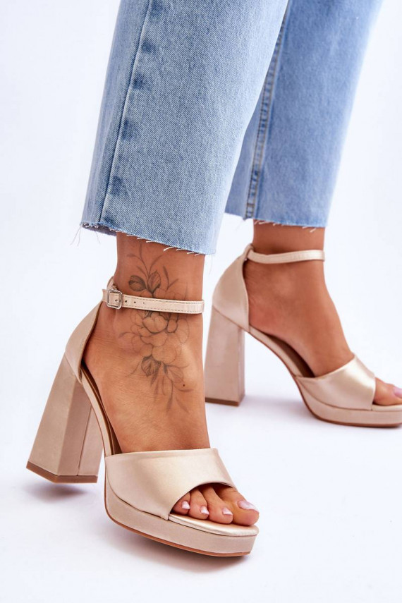 Satino medžiagos sandalai su plačiu kulnu smėlio spalvos Eternity