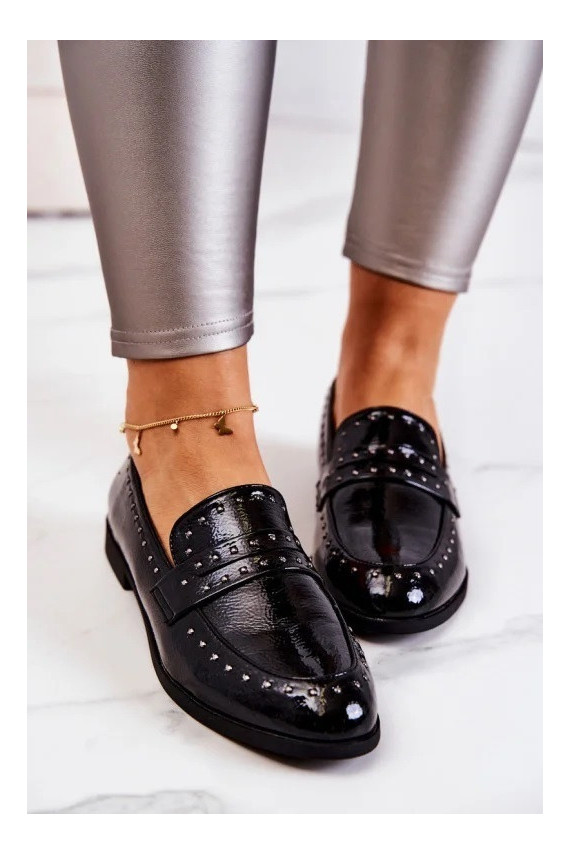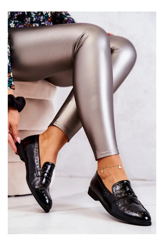 Moteriški mokasinai su lako efektu juodos spalvos Keelana