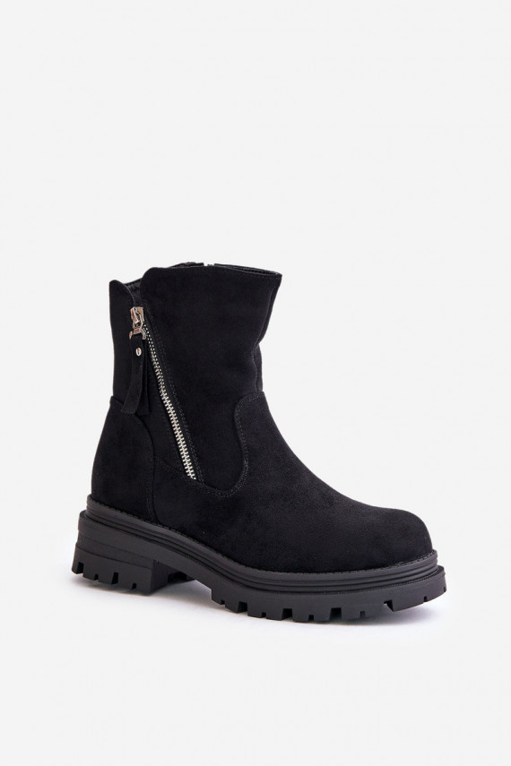 Aulinukai pašiltinti su plačiais kulniukais iš dirbtinės zomšos juodos spalvos Reloma