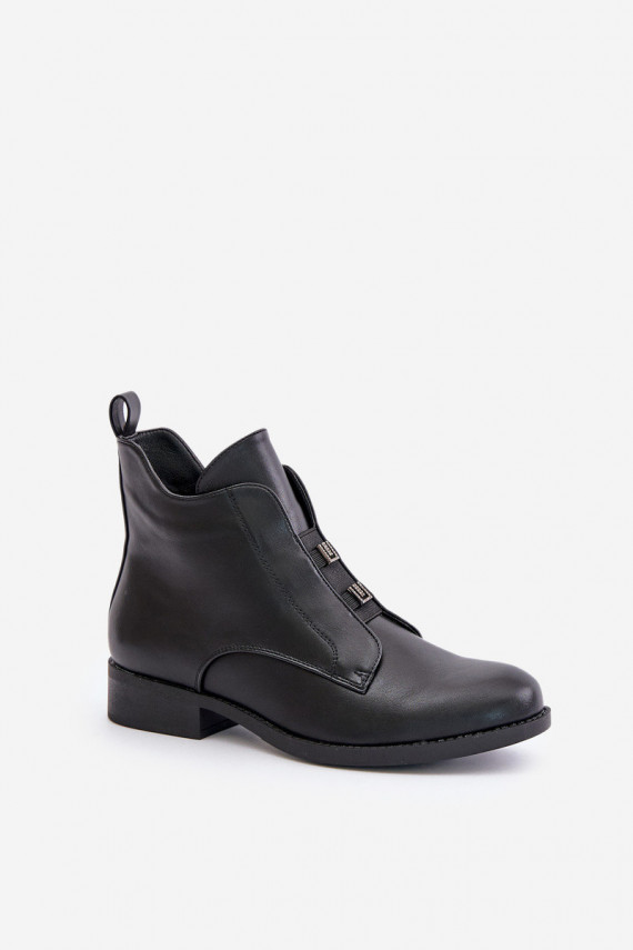 Pašiltinti moteriški aulinukai su plačiais kulniukais iš dirbtinės odos juodos spalvos
