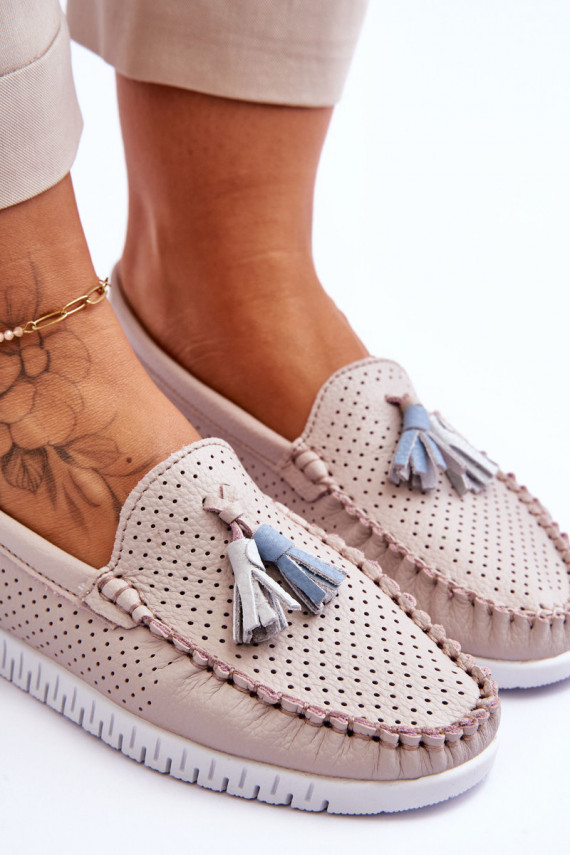Moteriški odiniai mokasinai su ažūro elementais šviesaus rausvo atspalvio Lanzarot