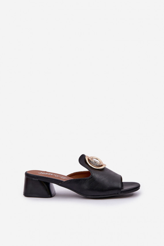 Elegantiško stiliaus Moteriškos šlepetės Ant žemo kulno su ornamentais juodos spalvos Feledis