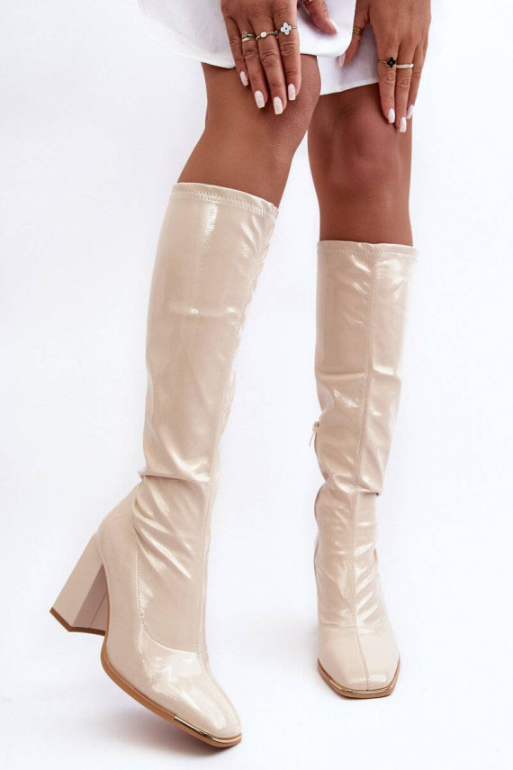 Lakuoti ilgaauliai batai su kulniukais smėlio spalvos Mlokva