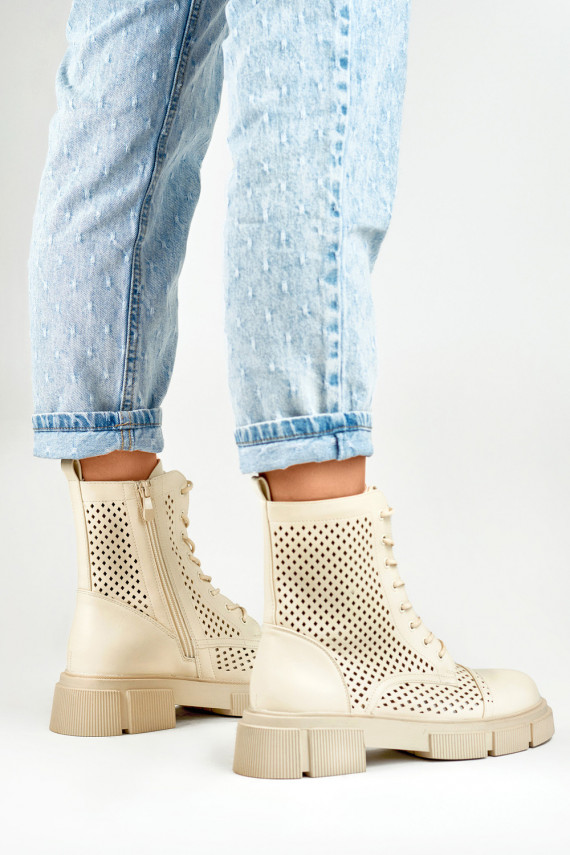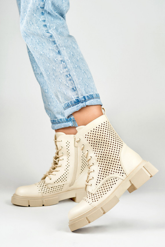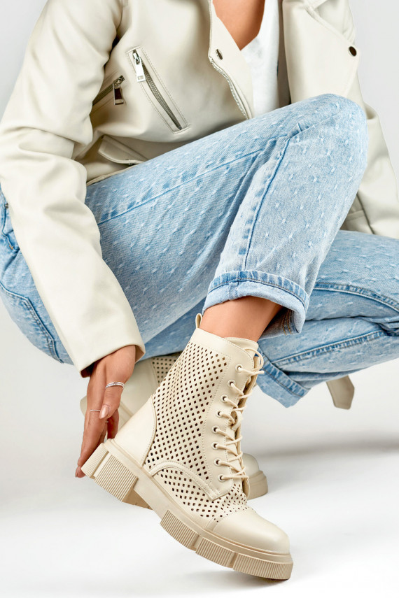 Moteriški ažūriniai smėlio spalvos nėriniuoti batai