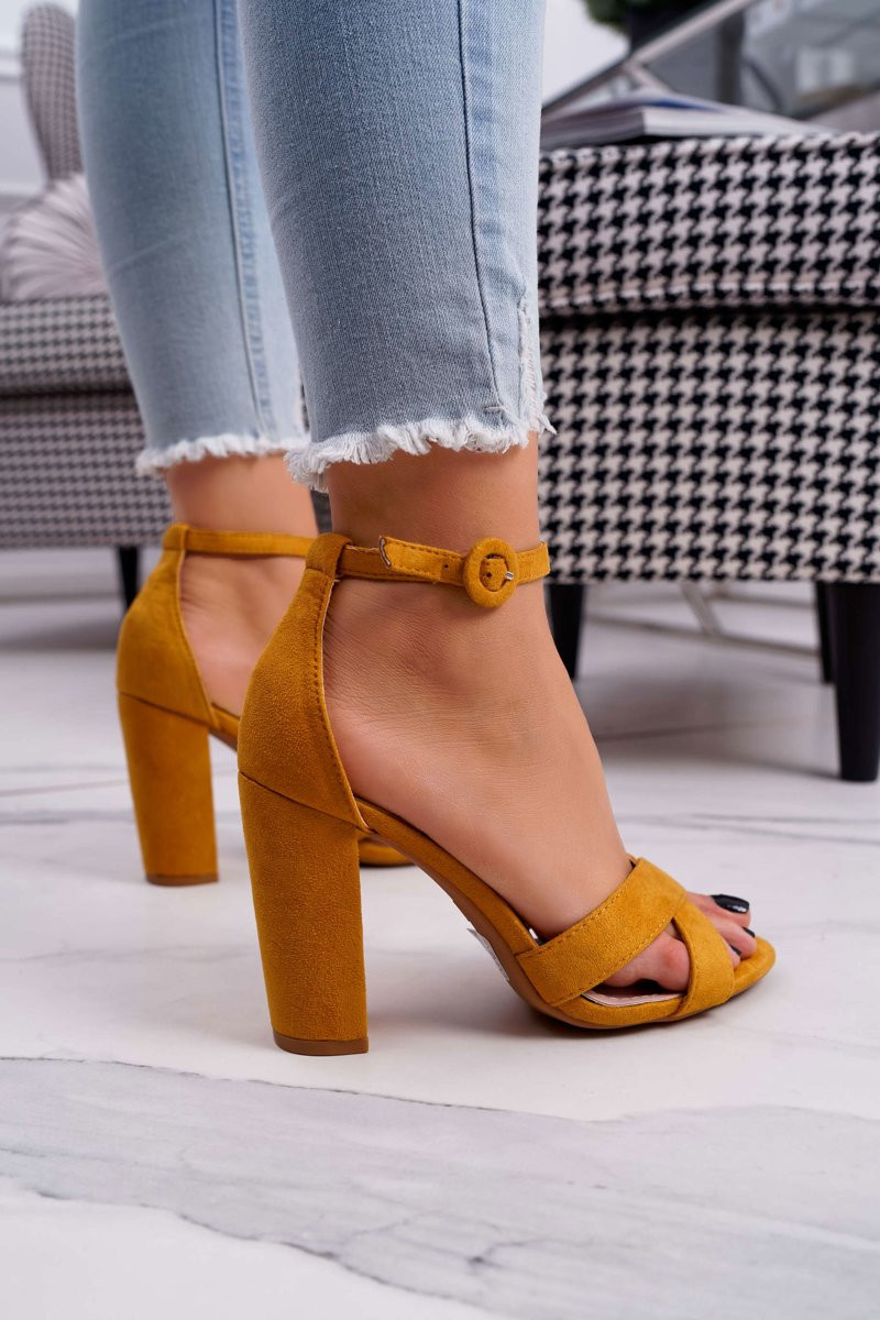 Moteriškos zomšinės aukštakulnės basutės geltonos spalvos Telmen