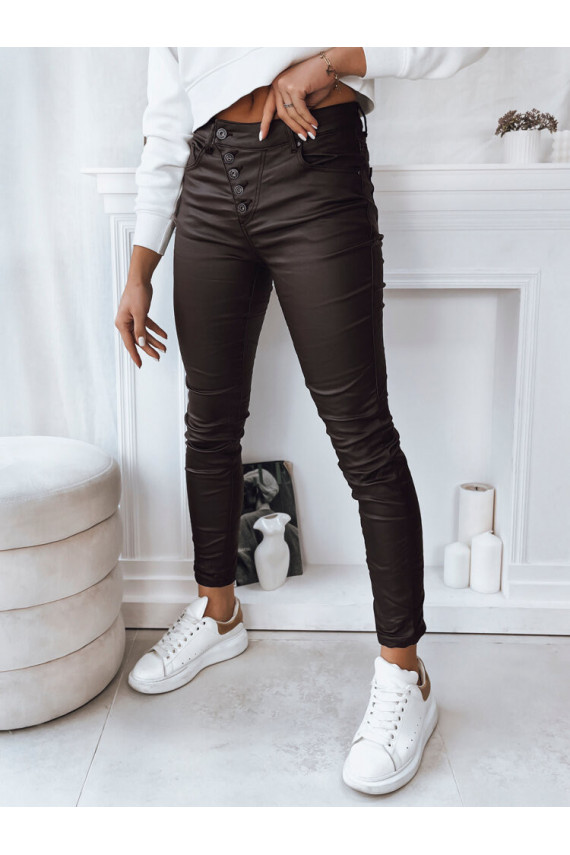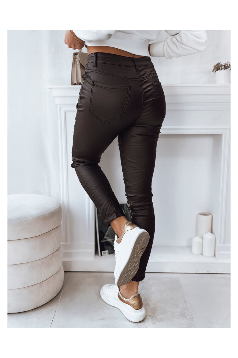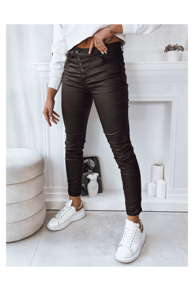 Stilingos kelnės aukštu juosmeniu su patraukliomis sagomis – modernios elegancijos esmė. Pagaminti iš aukštos kokybės odą imituojančios medžiagos, suteikia komforto ir suteikia roko charakterio. Dėl jų universalumo ir elegancijos jie taps jūsų mėgstamiausiu elementu bet kokiai progai.