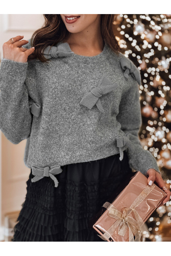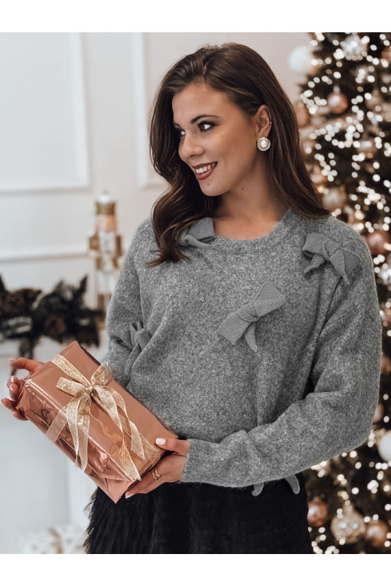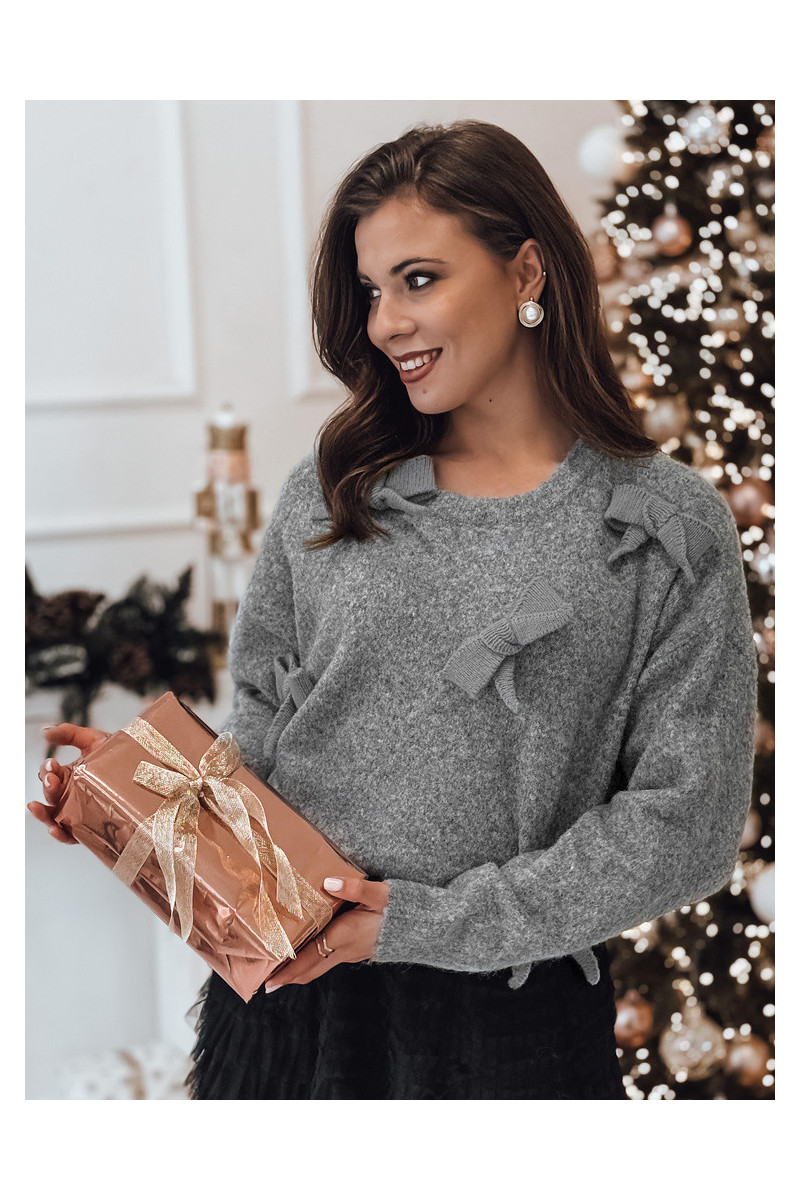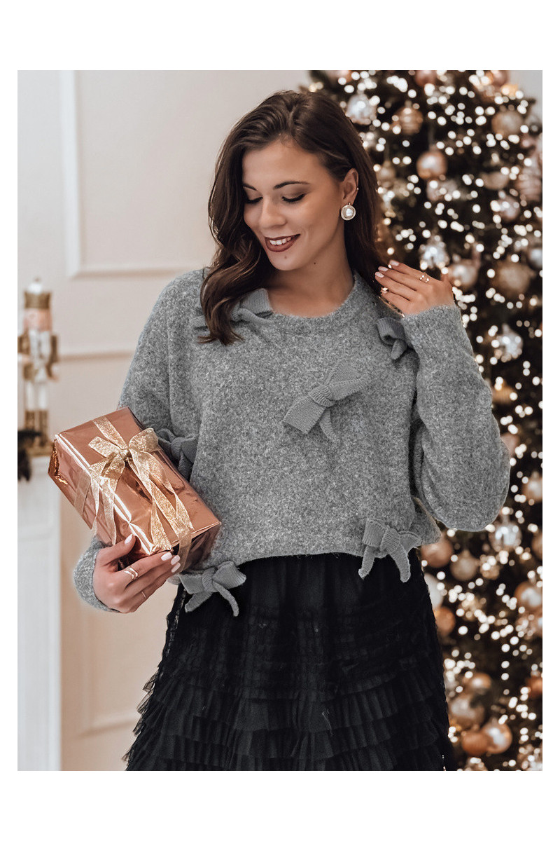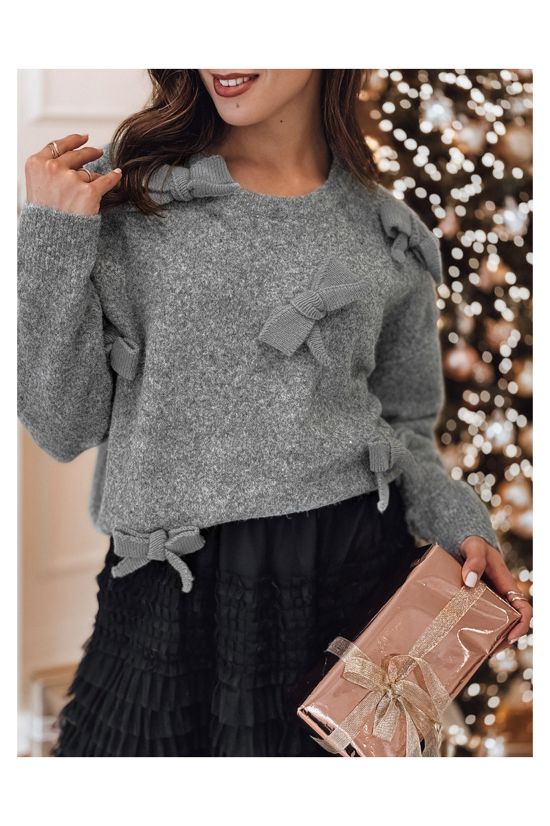 BOWTONE moteriškas megztinis su kaspinėliais šviesiai pilkos spalvos Dstreet MY2354
