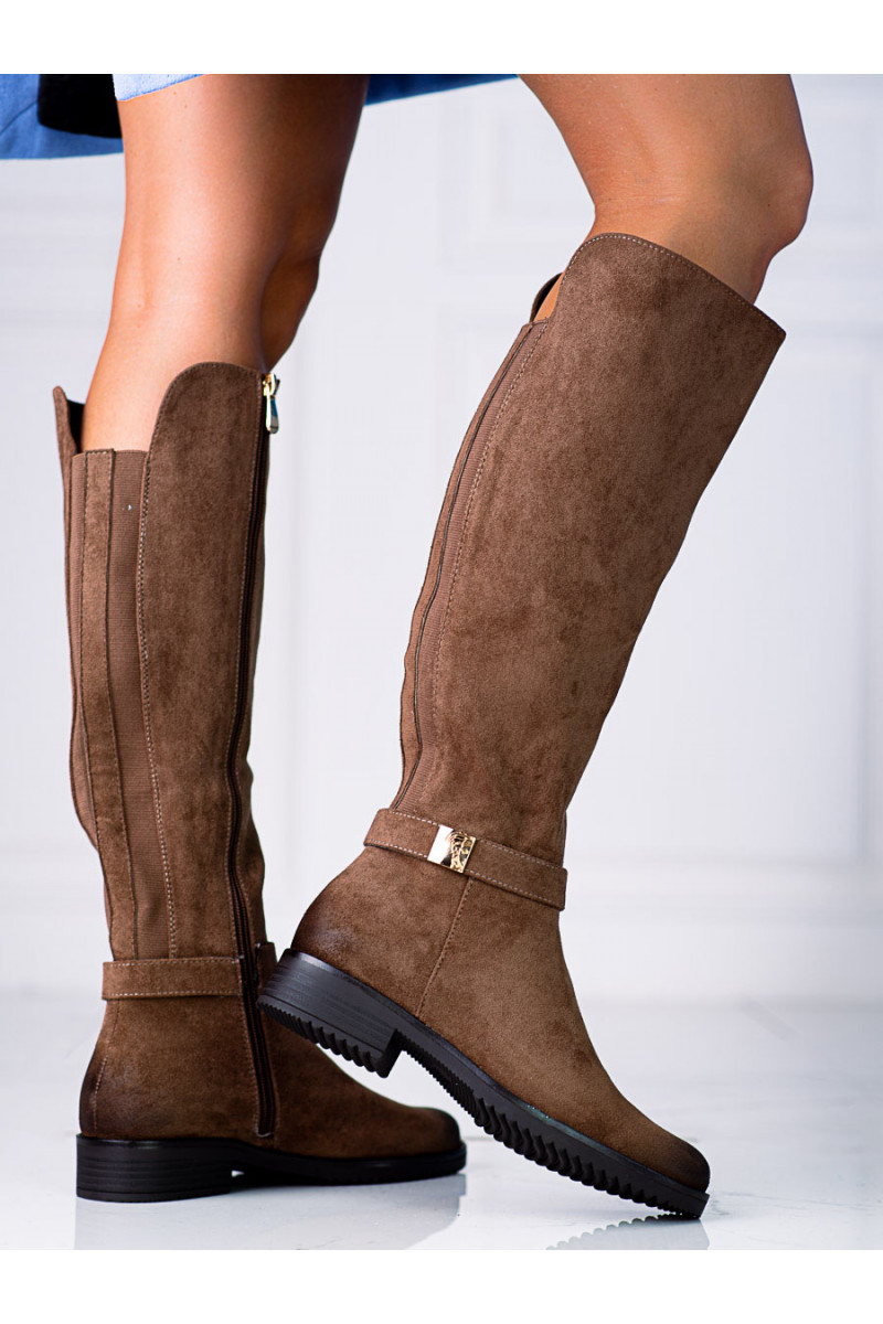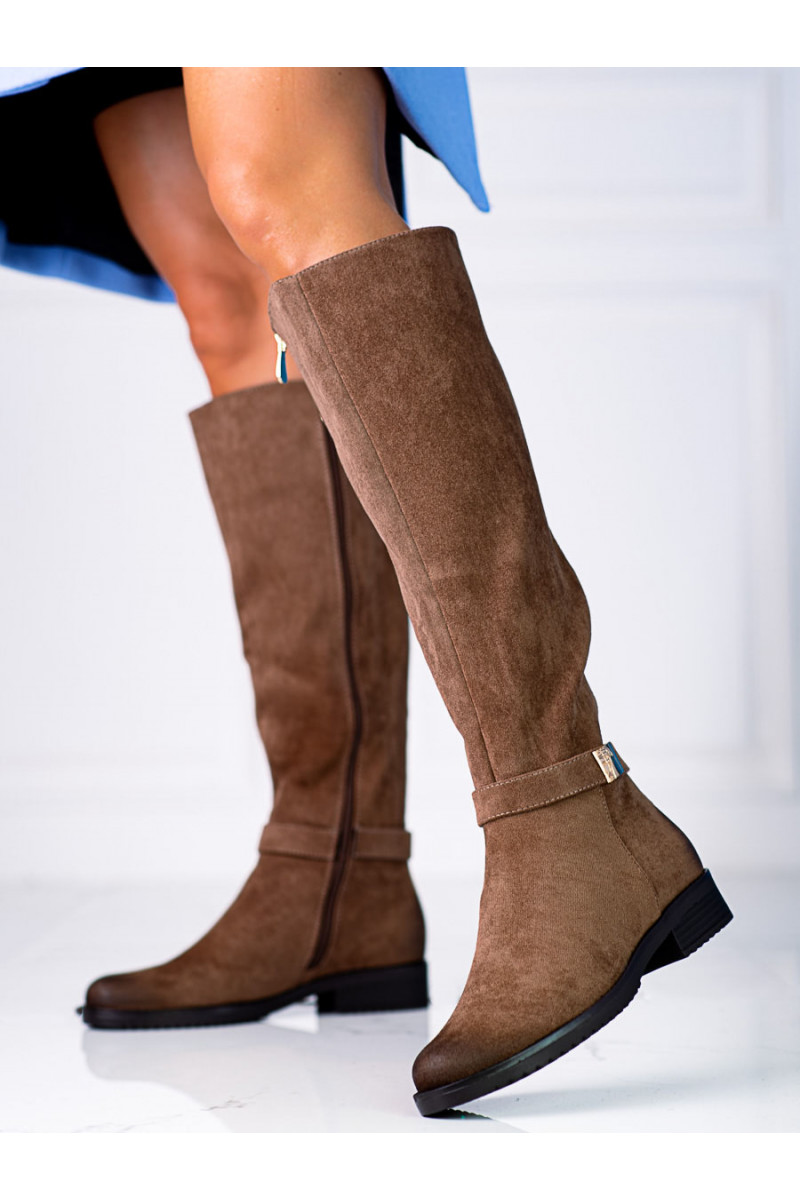 Ilgaauliai Vinceza iš eko zomšos rudos spalvos