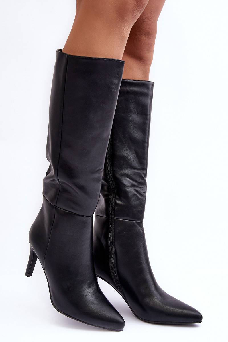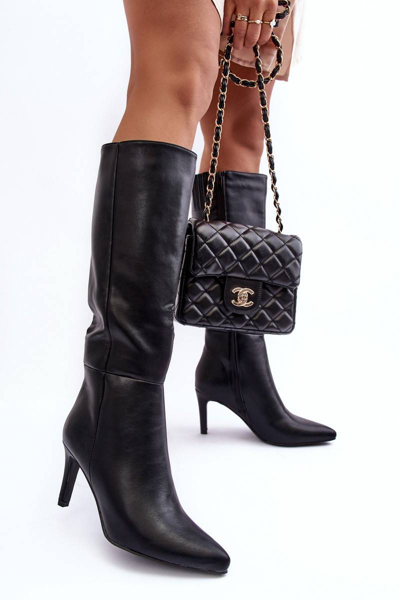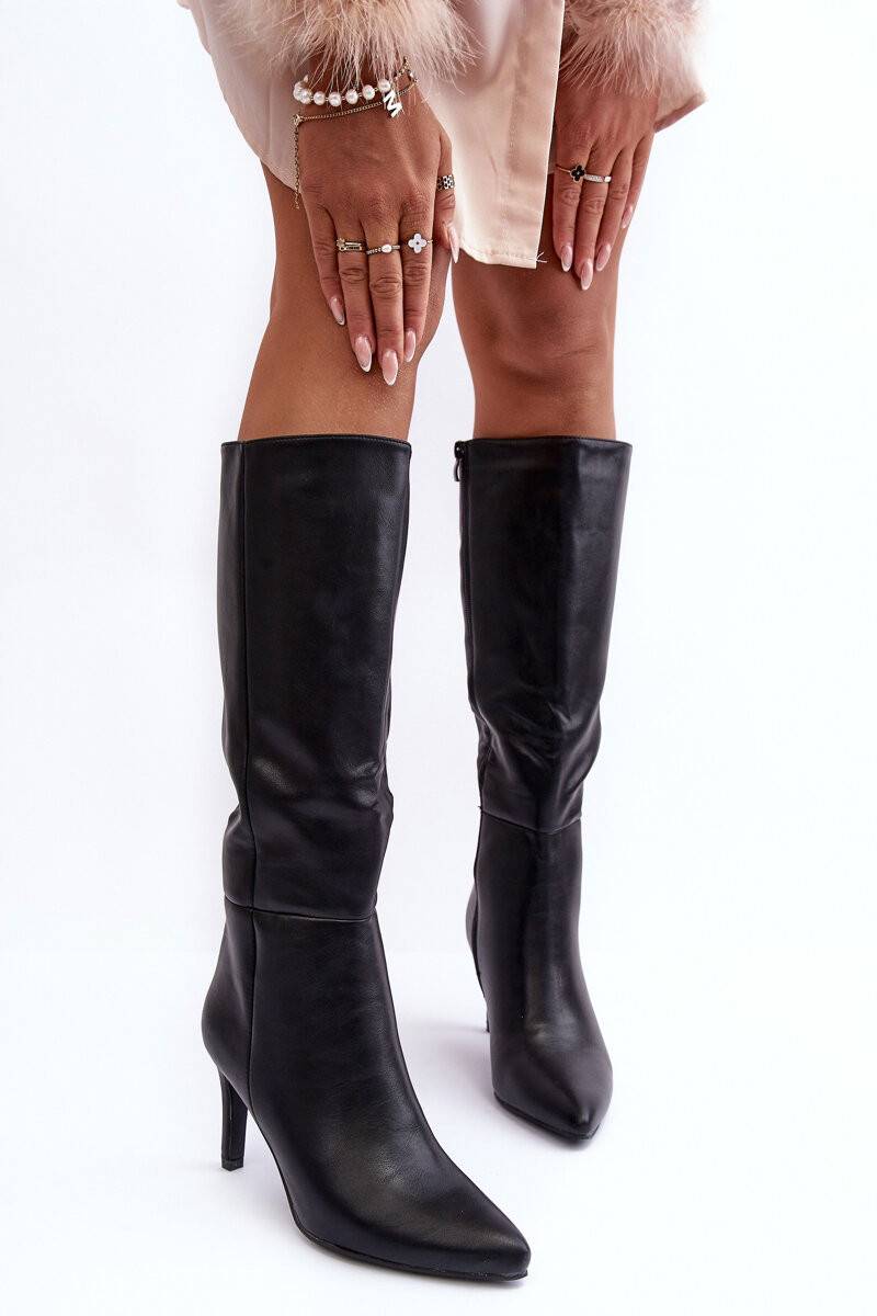 ilgaauliai batai su plonais kulniukais juodos spalvos Serpens