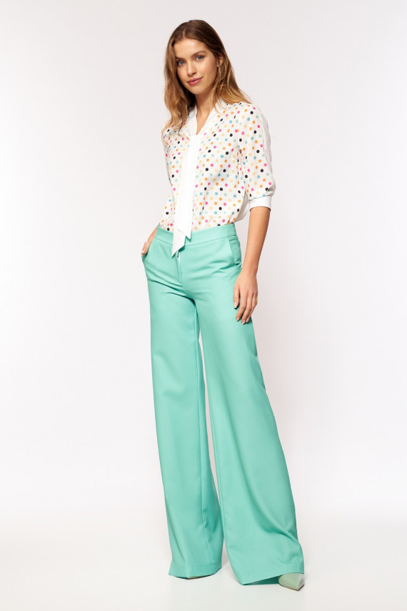 Seledyn palazzo pants are a perfect element of soft-office style, going beyond the canon. The unobvious color will break the classic office styling, and the nice-to-touch Medžiaga: with a touch of elastane will ensure high comfort of wear.