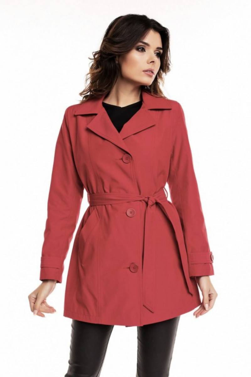 Classic cotton lined women's trench, perfect for the autumn whimsical weather. The coat is laced at the waist and fastened with three large buttons. Cuff decorated with a strip. Poliesteris lining.