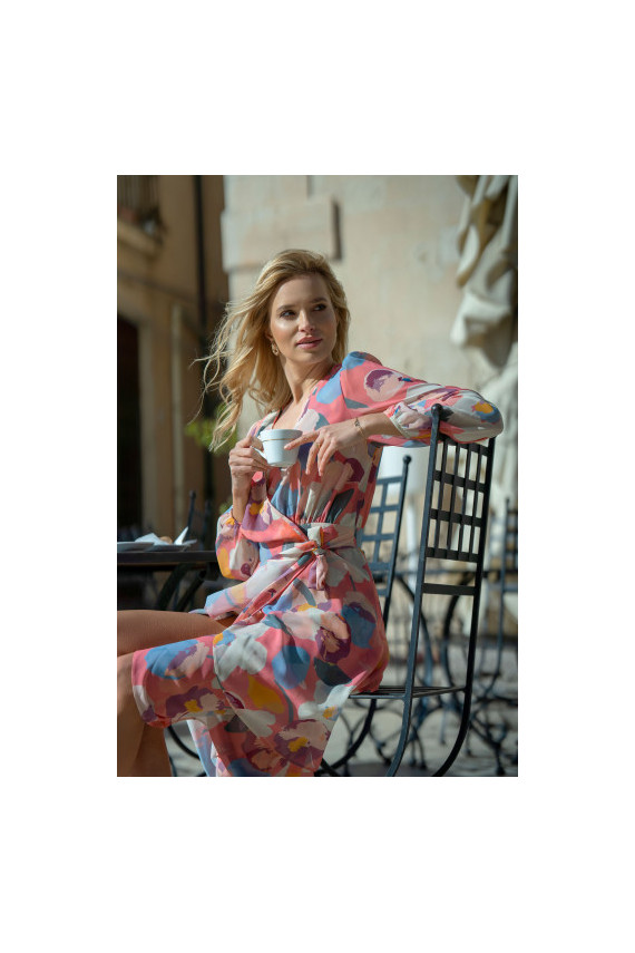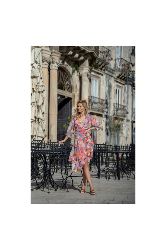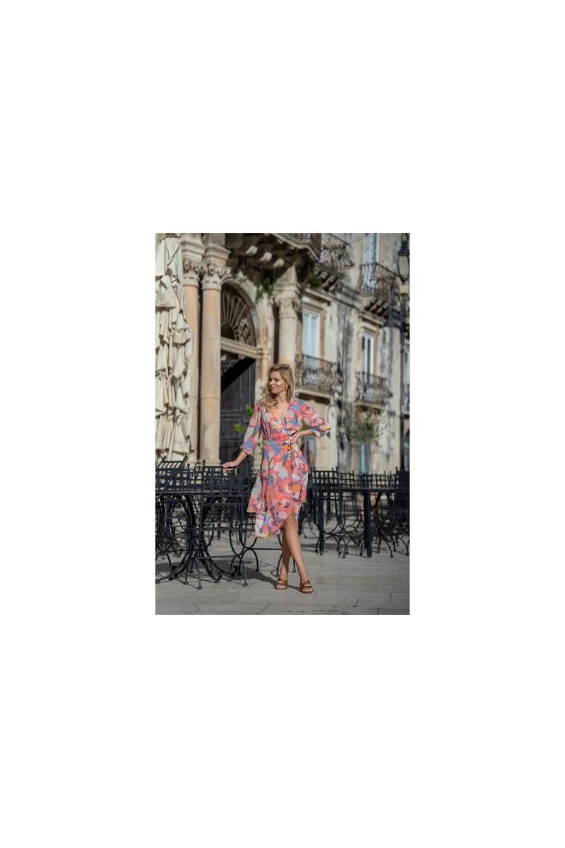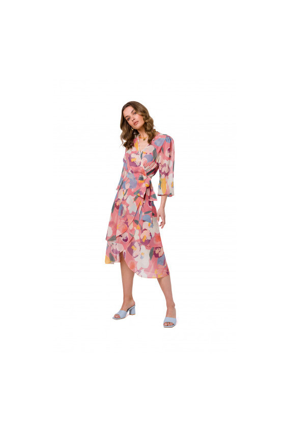 A chiffon overlap suknelė with two ruffles and a tie at the waist is an option for many occasions. The suknelė is unlined.