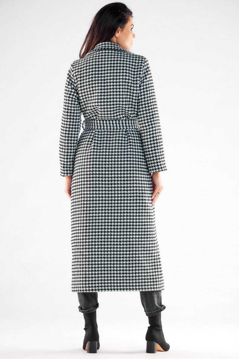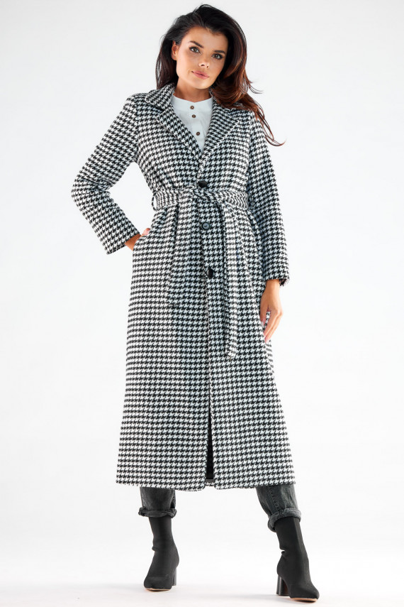 Paltas made of pleasant, warm Medžiaga: with a maxi length. The straight cut of the coat and sleeves optically slenderize the silhouette. Fastened with three large buttons and additionally tied with a belt. The coat is fully lined. A great choice for going out with friends, but also as an outer garment for a corporate meeting.