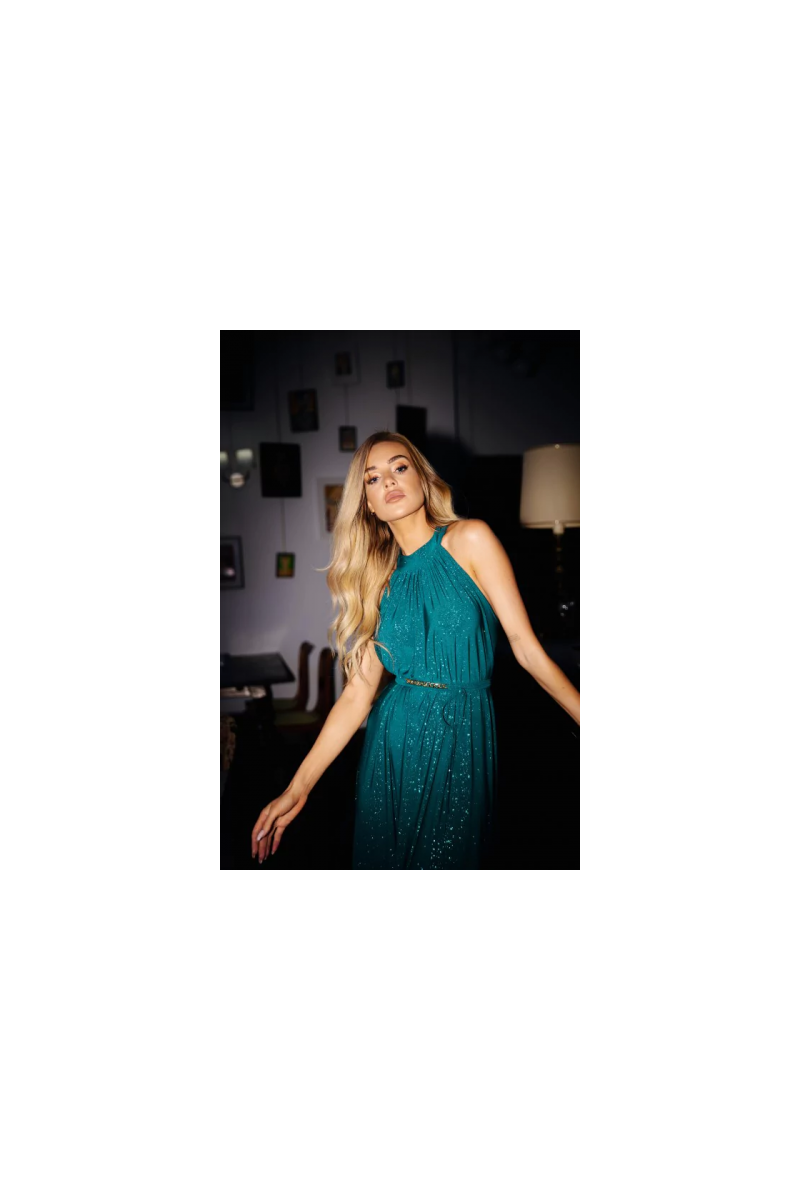 One suknelė and several styling possibilities. A flared maxi cut with a halter neckline is a proven solution for ladies who appreciate freedom, or who want to mask figure flaws. The suknelė is made of Medžiaga: with brocade, unlined. Complete with a tie belt.