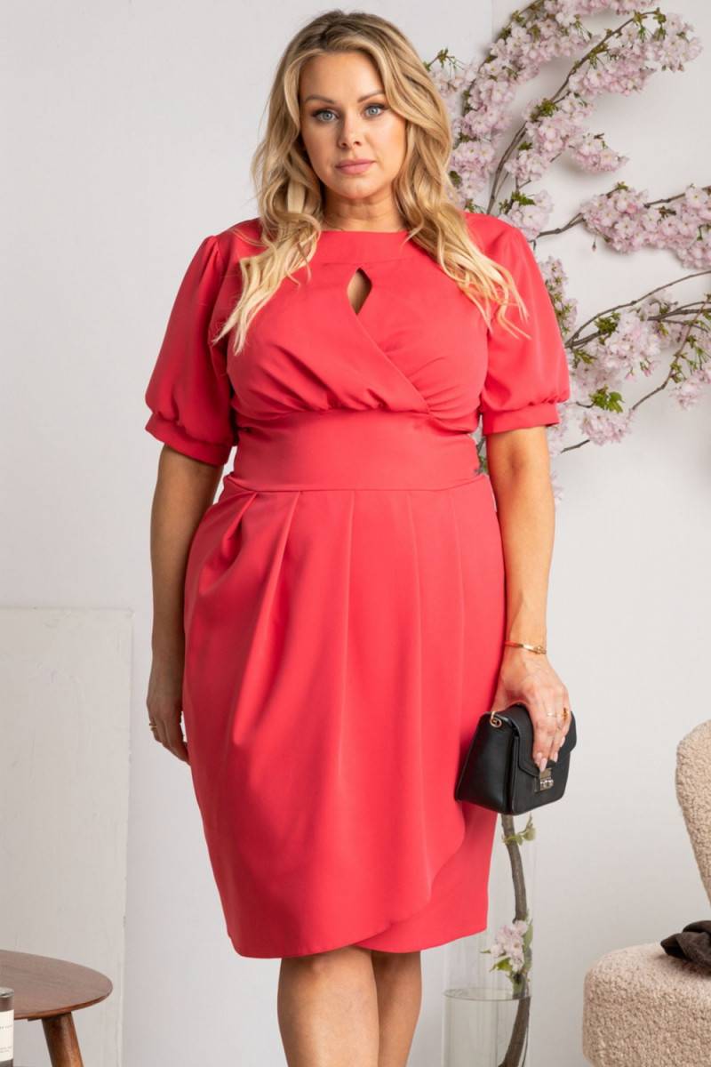 Unusual suknelė with a teardrop neckline cut off at the waist Ingrida is a beautiful very elegant suknelė model. It was sewn entirely in Poland by our seamstresses from the best quality domestic materials. They provide incredible comfort and are pleasant to the touch. In addition, thanks to careful workmanship, it will surely serve you for years. It has sleeves up to the elbow and the overall length reaches to the knees. The elements that characterize this are a charming teardrop neckline and a cut-off at the waist. It will be perfect for weddings, communions or other important celebrations. It is available in several wonderful color versions. It was designed by our Karko designers especially for women who are looking for an original suknelė for important outings! Our unique Ingrida suknelė is a real treat for all elegant women. Its universal cut makes any female figure will gain hourglass proportions, and interesting accents add class and extraordinary chic. Choosing this creation for any celebration and occasion, however, you must remember that Ingrida is a decoration in itself and does not need many additional accessories. All you need is a simple handbag, classic stilettos and subtle jewelry, and the perfect outfit for a date, family dinner or corporate event will be ready! However, if the intriguing cut of the suknelė alone is not enough for you, try playing with colors. In our store, Ingrida is available in as many as seven shades: from classic black, through expressive raspberry, to charming lilac and coral hues. Choose the variant that best reflects your personality, and select accessories from the same color palette or, on the contrary, bet on strong contrasts.
