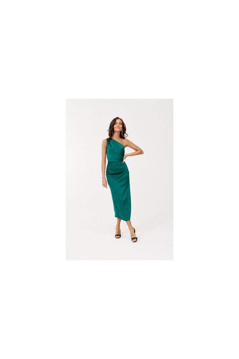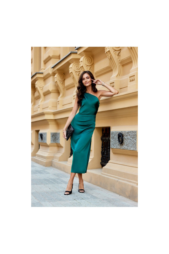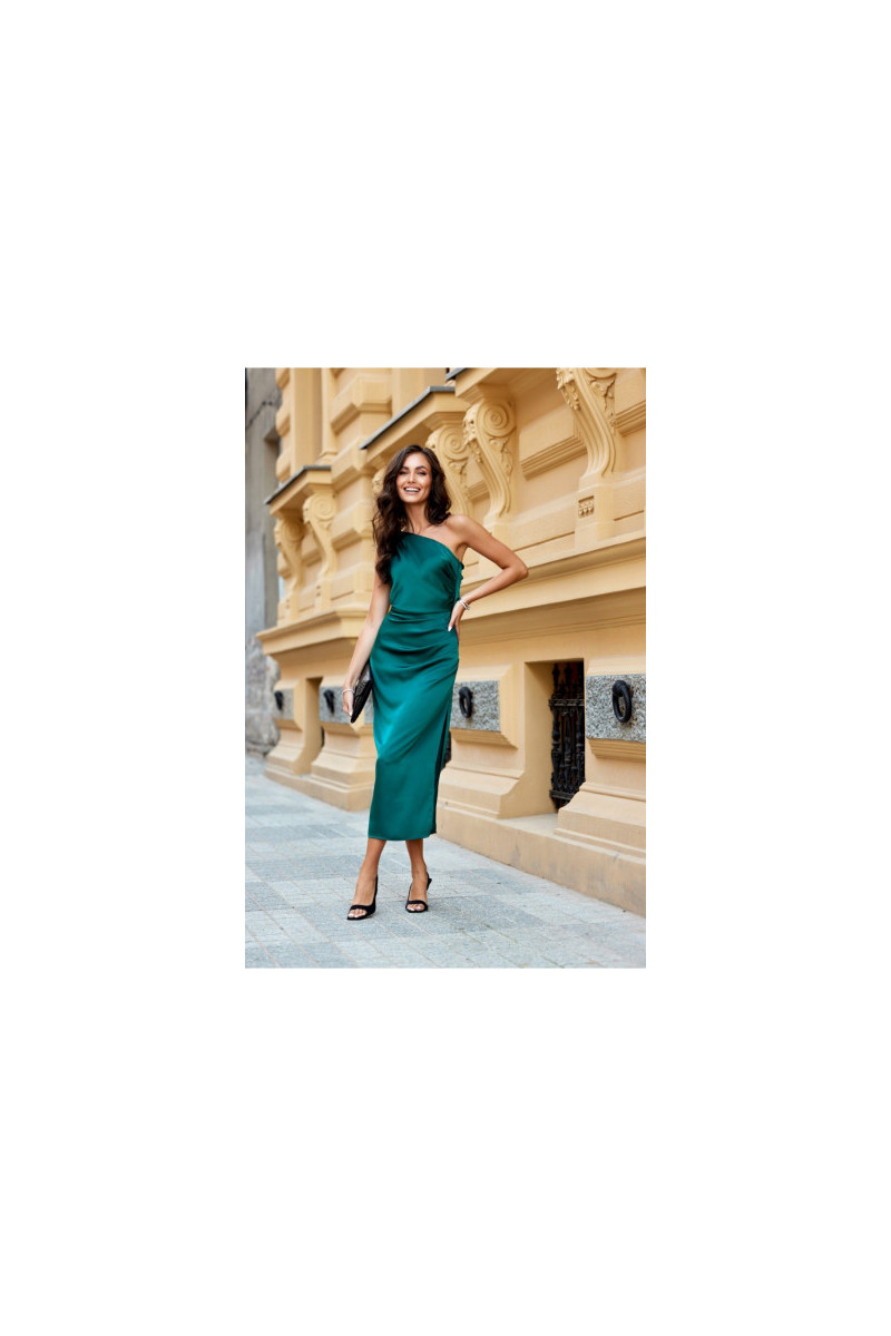 One-shoulder midi suknelė with a subtle slit at the leg is made of delicate satin Medžiaga:. On the side there is a crease, which perfectly conceals any imperfections. A wide shoulder strap with creases on one shoulder gives it a unique character. Fastened with a covered zipper on the side of the suknelė. This midi suknelė is not only elegant, but also functional. The midi length gives the suknelė a refined, feminine style. This suknelė cut will allow you to feel original by emphasizing your individual style and is sure to attract attention by making you stand out from the crowd regardless of the occasion. The product is made and sewn in Poland.