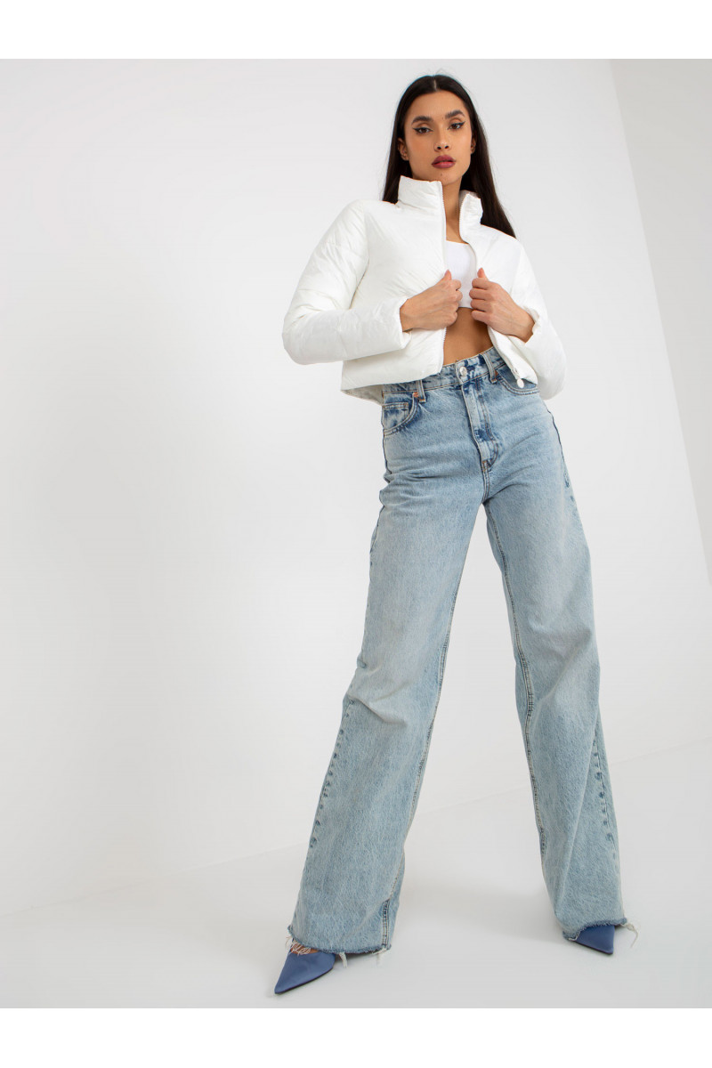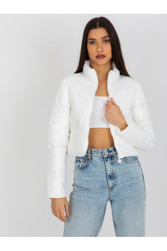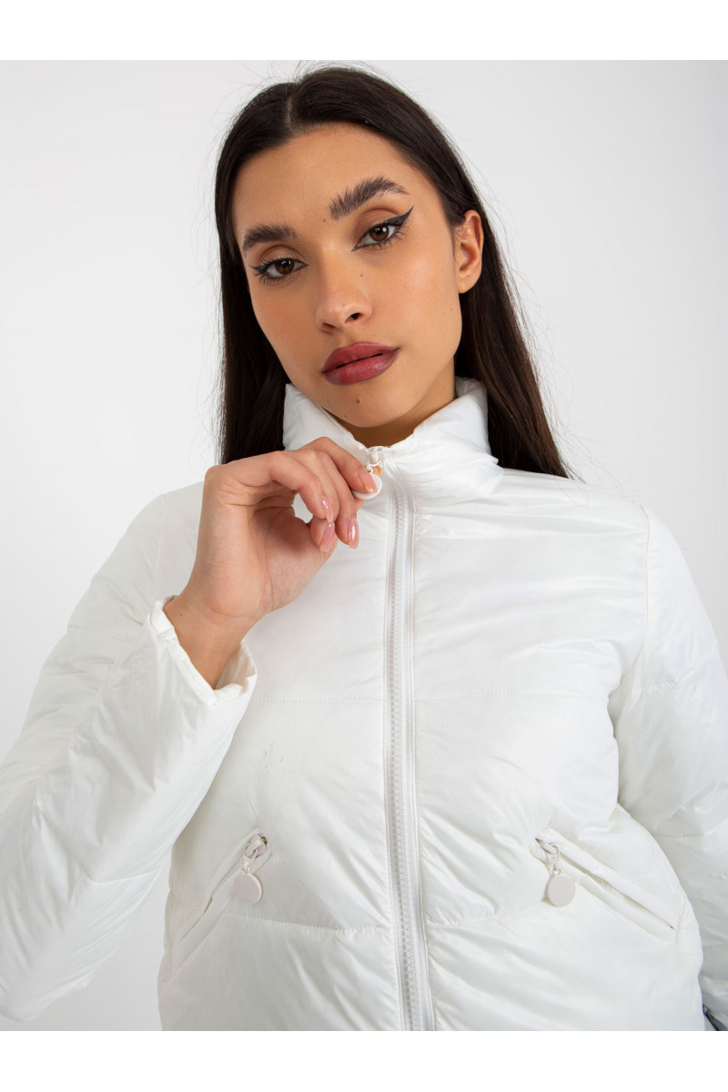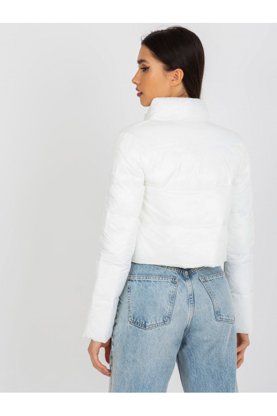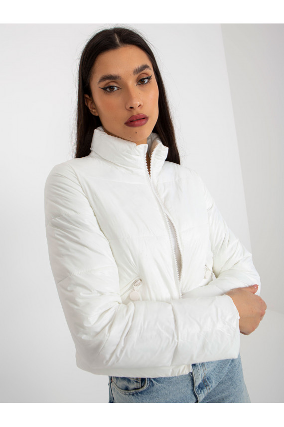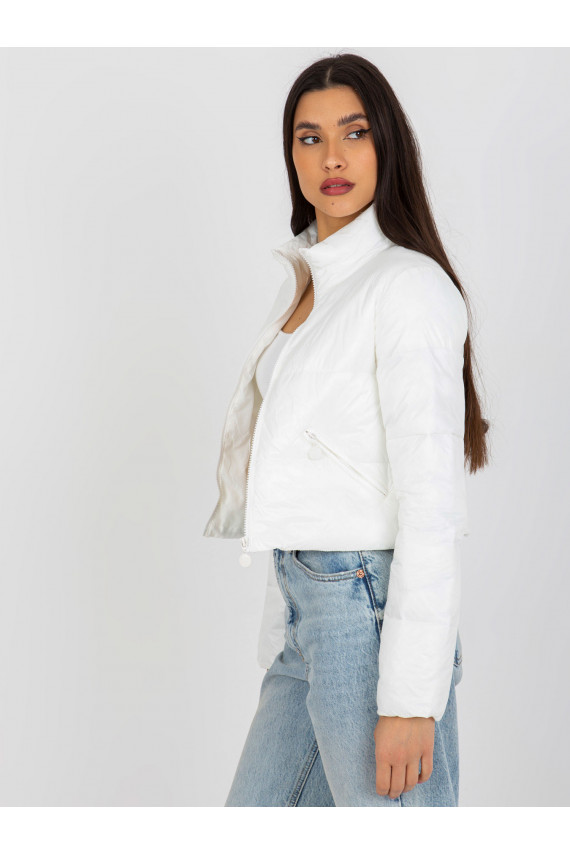 Ecru trumpas pereinamasis dygsniuotas švarkas su kišenėmis.