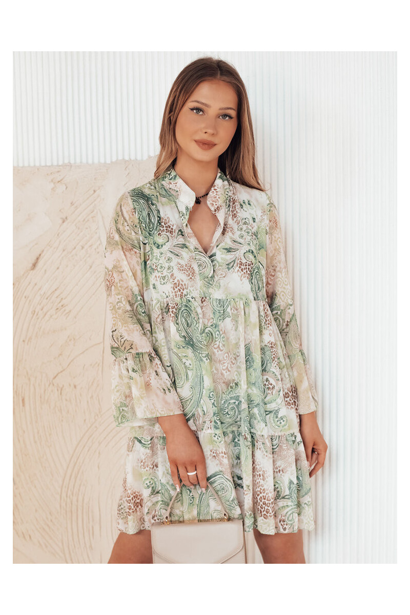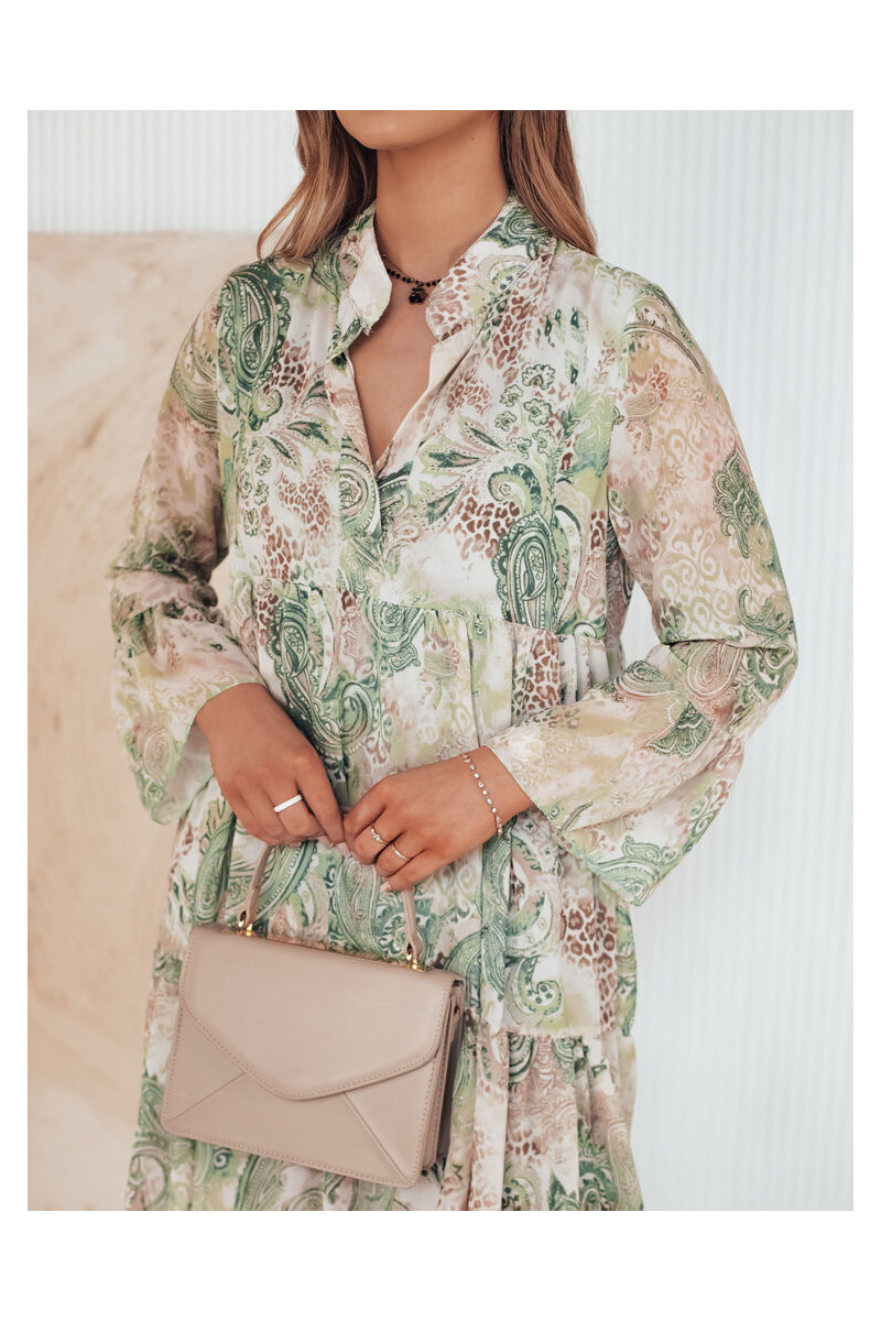 Įsimylėkite unikalaus dizaino PRINSA suknelę. Platėjančios rankovės suteikia lengvumo, o elegantiška stovo formos apykaklė pabrėžia kaklą ir veidą. Įspūdingas raukinys apačioje suteikia suknelei lengvumo, o smulkus gėlių raštas traukia akį. Susikurkite nepamirštamą įvaizdį su šia suknele!