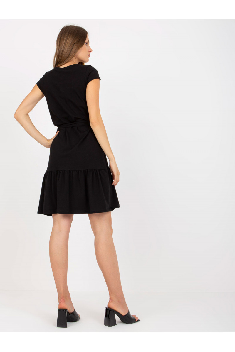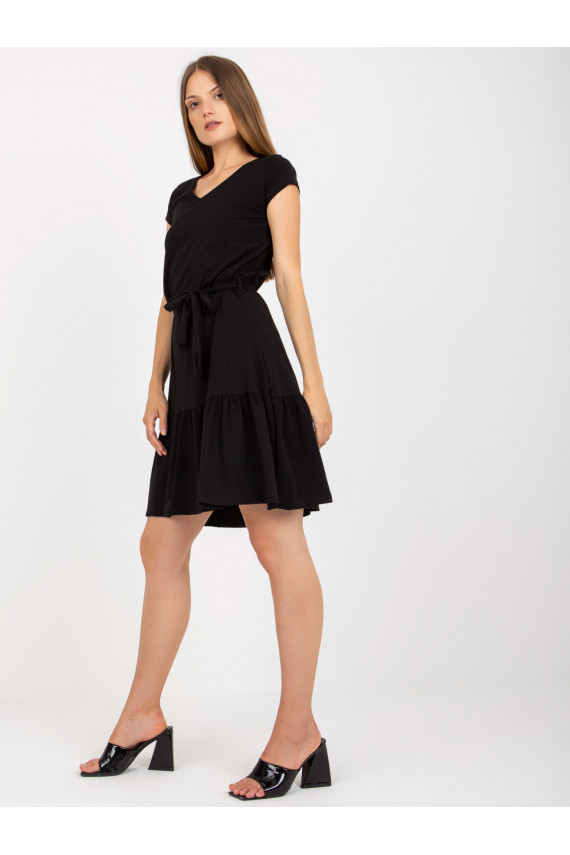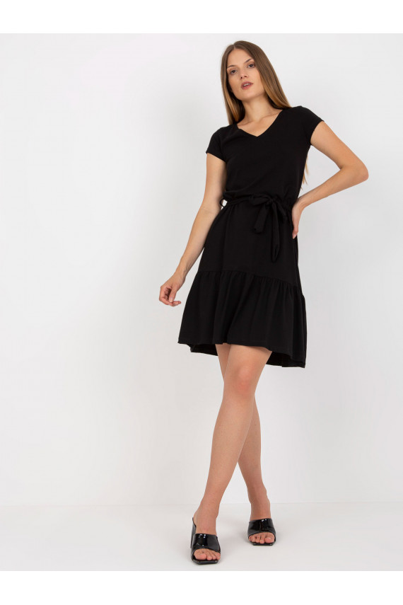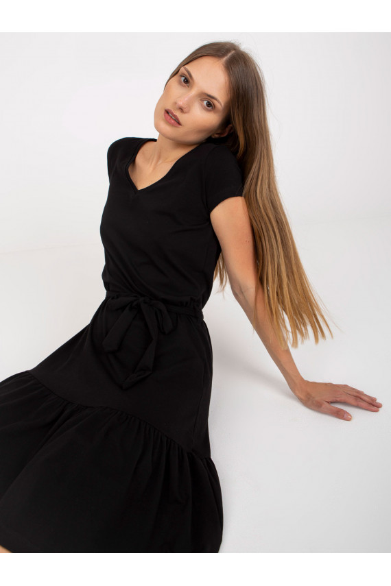 Juoda bazinė medvilninė suknelė su kaklaraiščiu RUE PARIS .