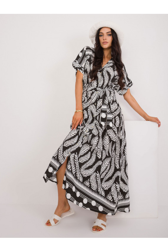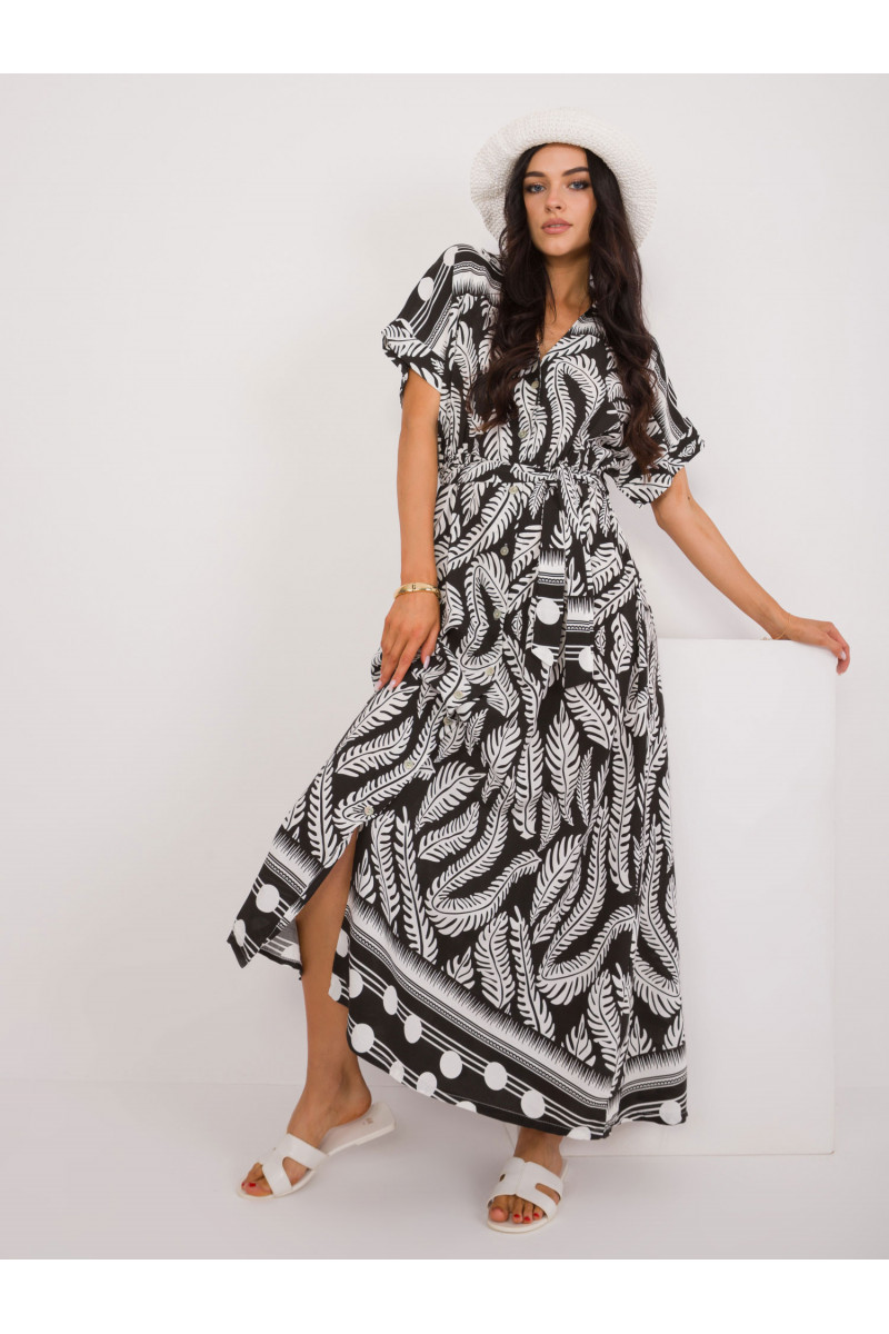 Suknelės matmenys vieno dydžio matuojant plokščią: plotis po pažastimis - 52 cm, bendras ilgis - 138 cm.
