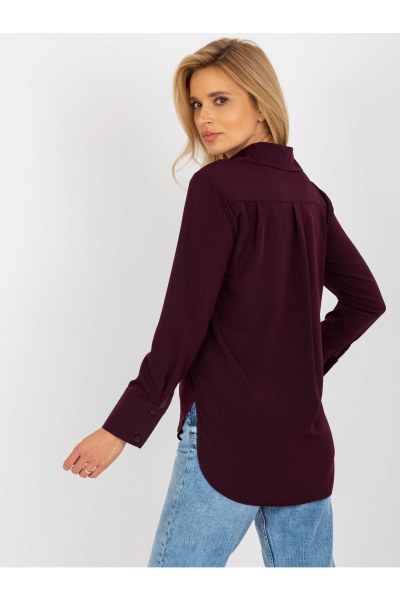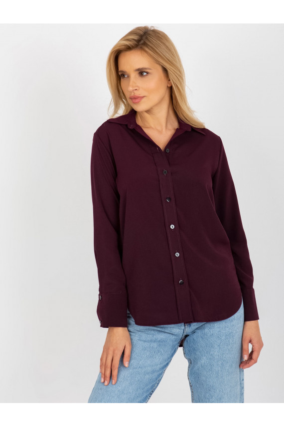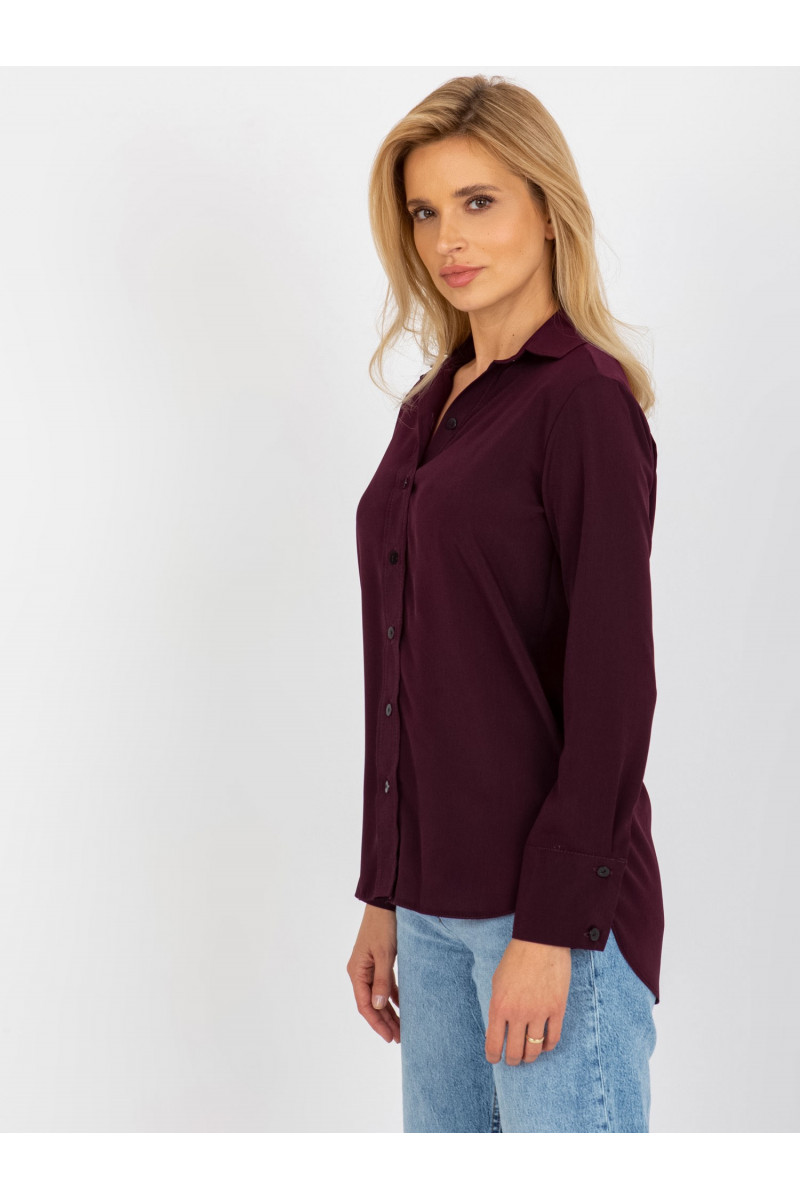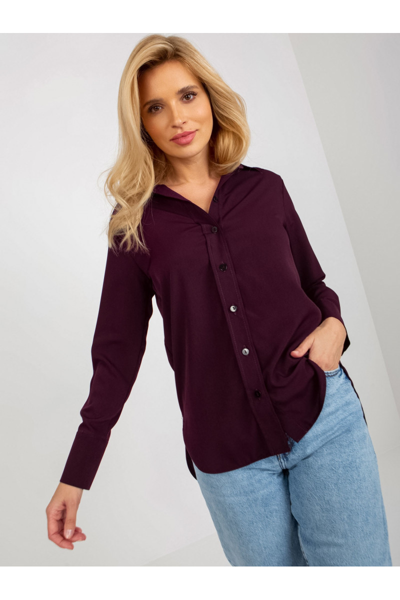 Tamsiai violetiniai klasikiniai moteriški marškiniai ilgomis rankovėmis.