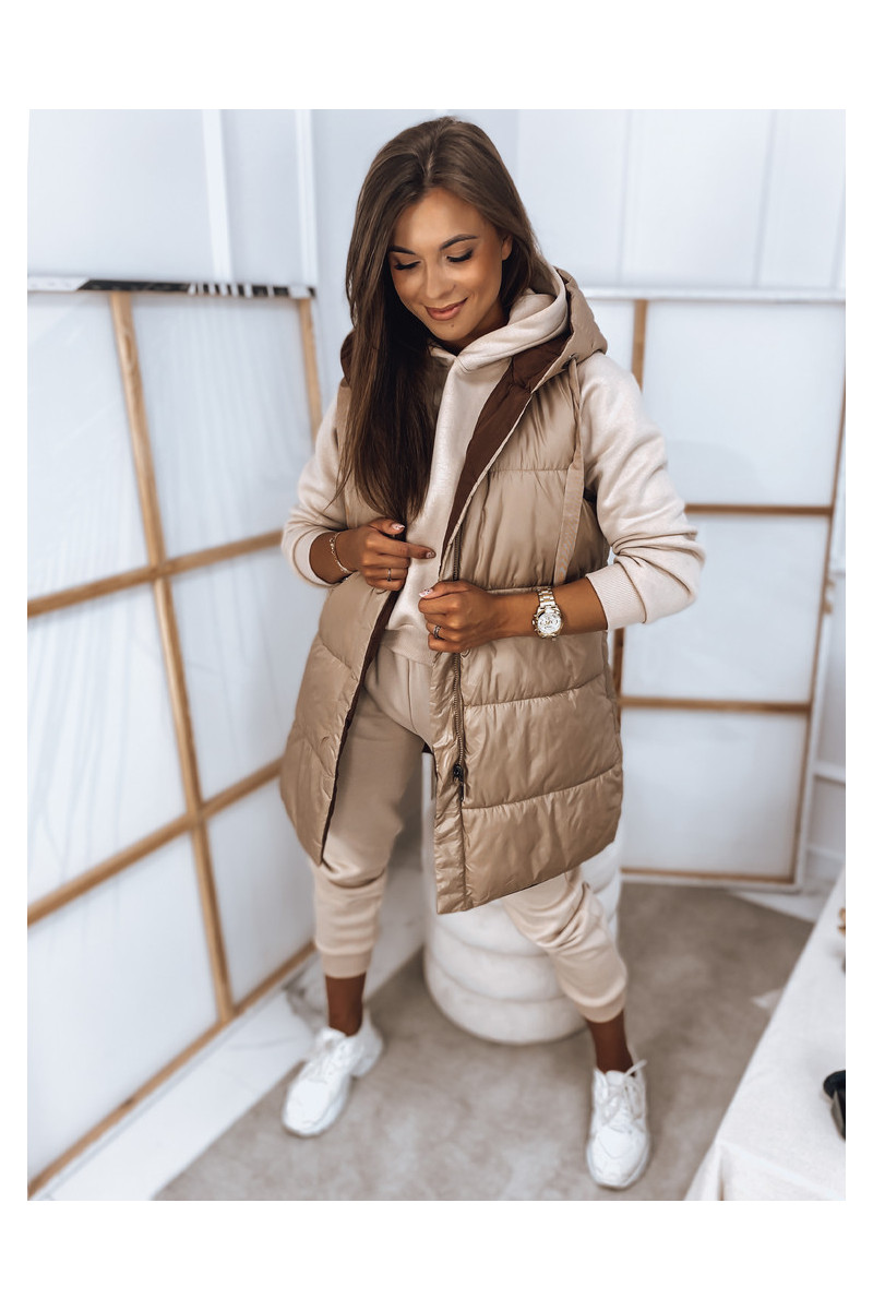 Dvipusė dygsniuota liemenė visada išskirs jus iš minios. Liemenė užsegama užtrauktuku. Modelis turi nenuimamą gobtuvą ir kišenes su užtrauktuku. Galimos kelios spalvos. Tai tikrai ateinančio sezono MUST HAVE. Puikiai tiks rudens ir žiemos sezonui, nes yra apšiltintas.