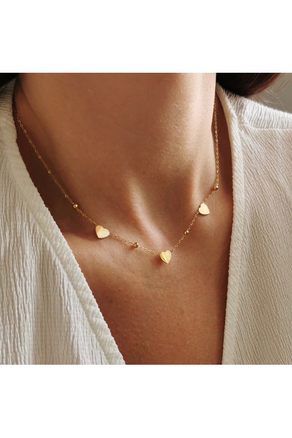 Kaklo papuošalas aukso spalvos su širdelėmis iš nerūdijančio plieno