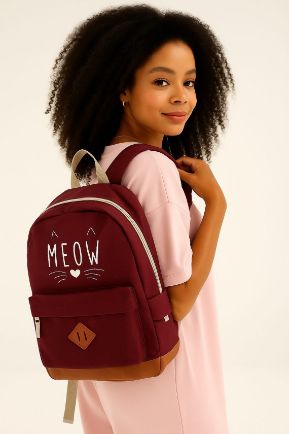 Kuprinė Retro Meow tamsiai raudonos spalvos
