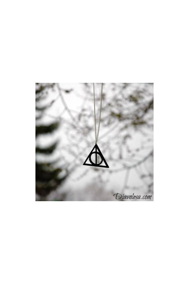 Kaklo papuošalas, vaizduojantis garsaus rašytojos J.K. Rowling romano "Mirties relikvijų" simbolį.