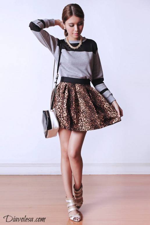 Lengvas, leopardo kailio raštu margintas sijonas.