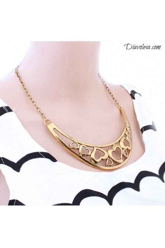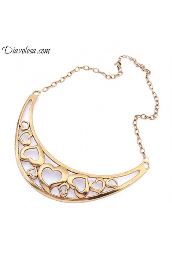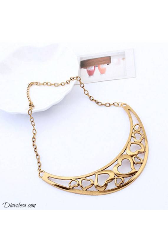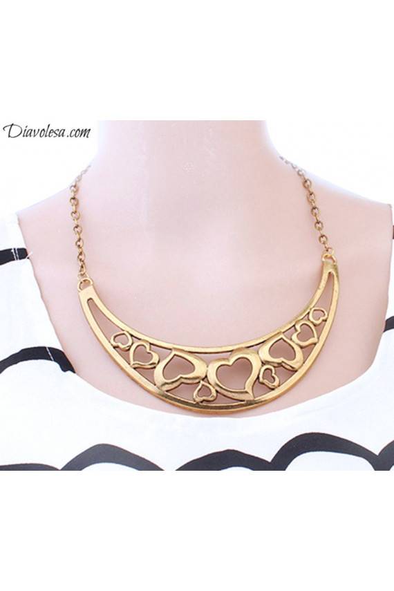 Prabangus kaklo papuošalas - kolje. Pagrindinis papuošalo akcentas - vidinėje jo pusėje esančios širdelės. Kaklo papuošalas yra pusmėnulio formos, pagamintas iš metalo - aliuminio ir yra sendintos aukso spalvos.