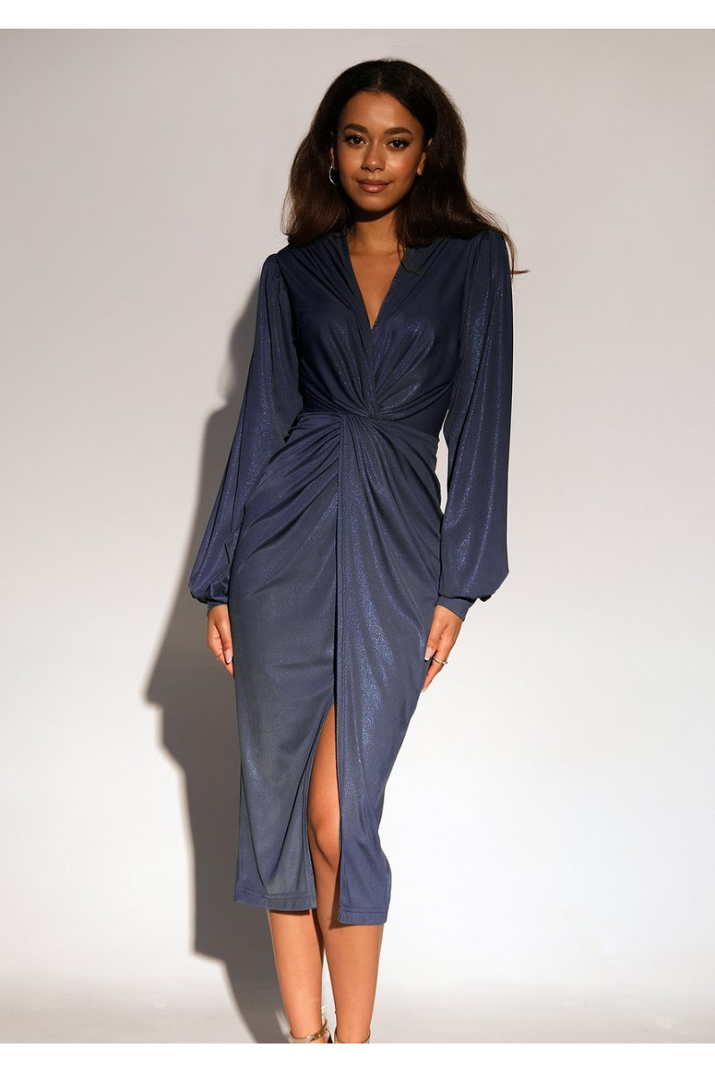 Labelle - tamsiai mėlynos spalvos MIDI ilgio suknelė su skeltu