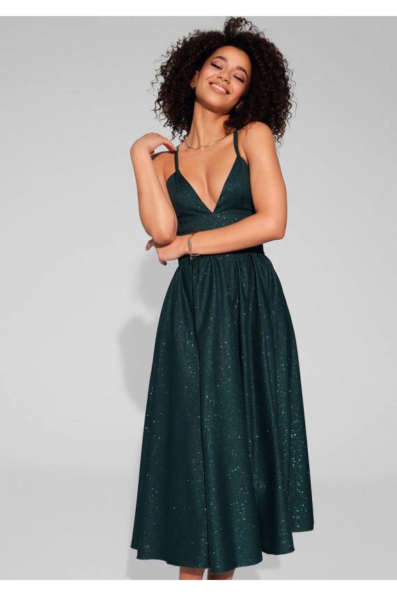Livia - žalia Midi suknelė su petnešėlėmis