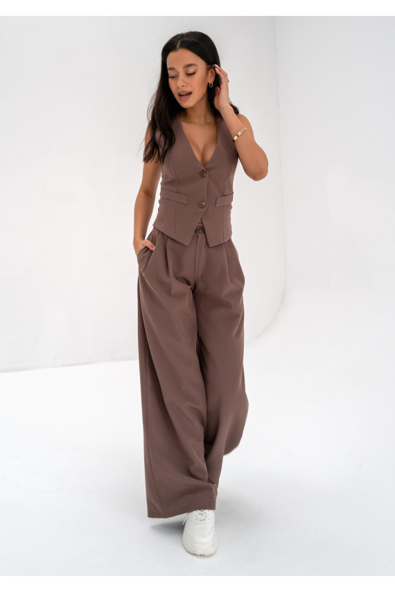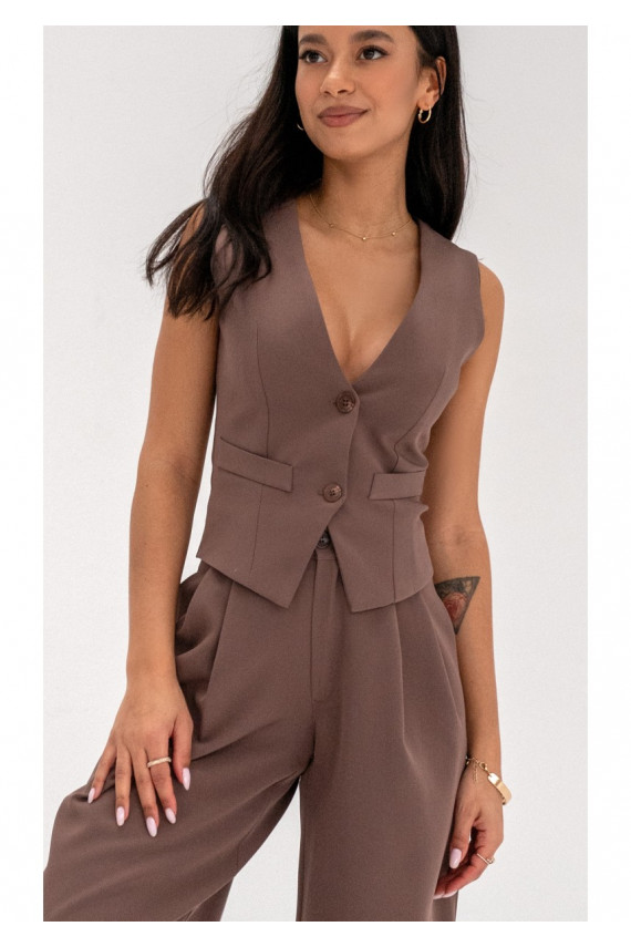 Mergina, vilkinti drabužį, yra 163 cm ūgio, jos apimtys yra 84/62/89. Modelis įprastai vilki XS arba S dydžio drabužius.