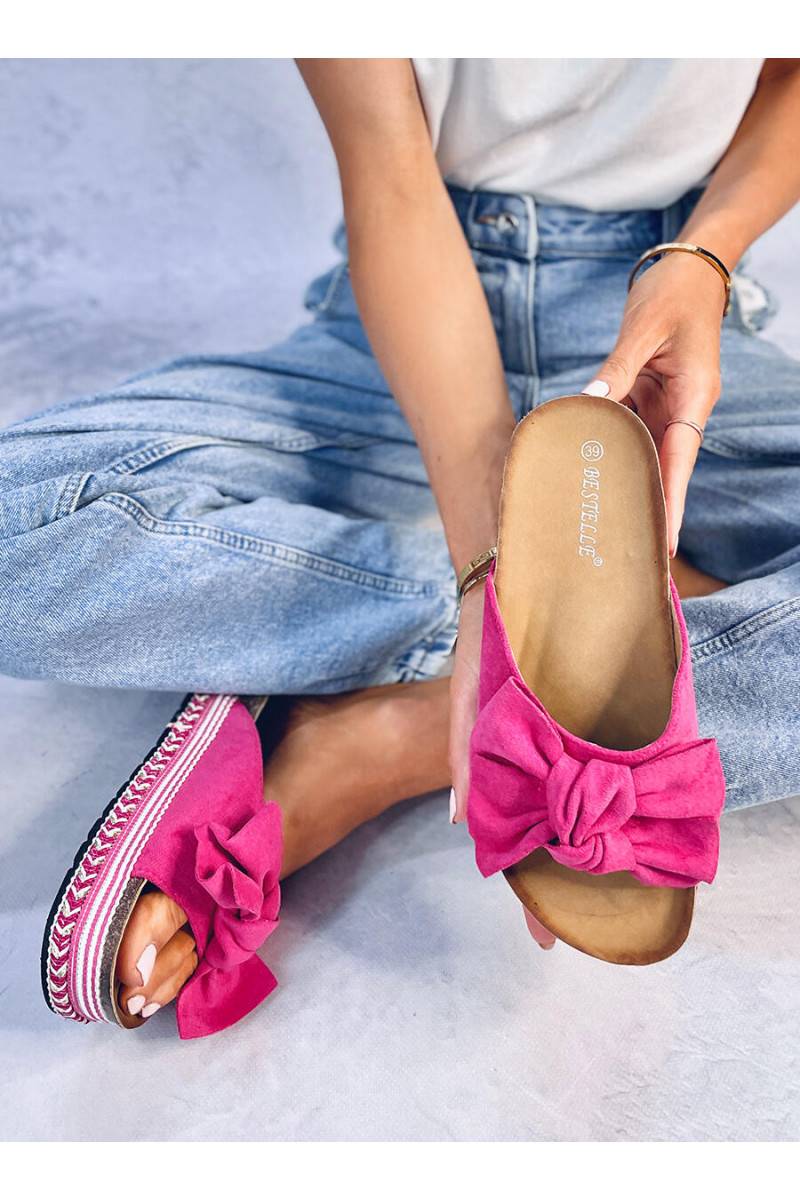 Šlepetės su kaspinėliu paaukštintu padu DELAIR rožinės spalvos