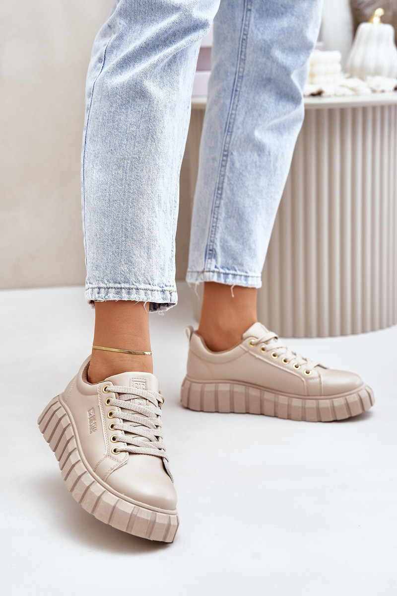 pašiltinti Sneakers modelio batai Moteriškos Big Star MM274618 smėlio spalvos