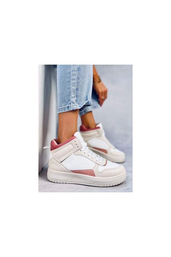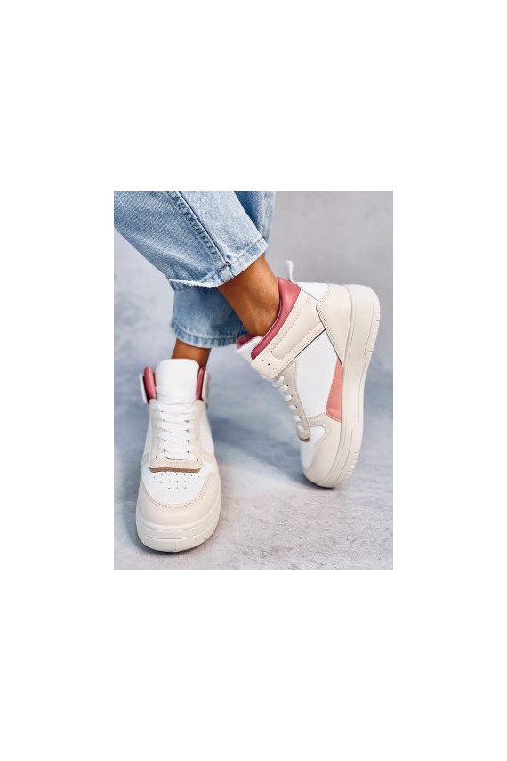 Moterų sportiniai batai su platforma baltos-rožinės spalvos