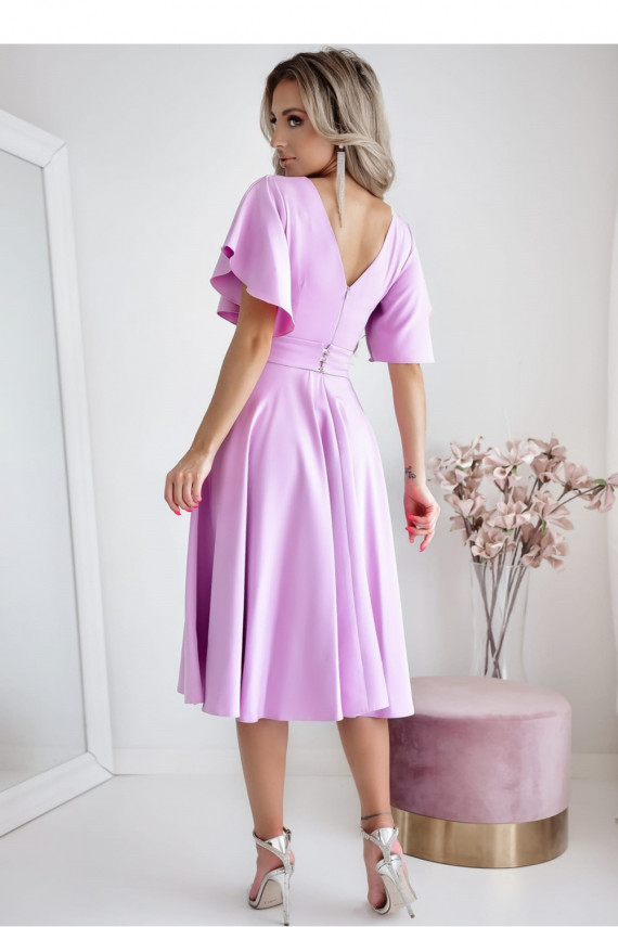 Elegantiška alyvinė suknelė yra puikus pasirinkimas ypatingoms progoms. Pagaminta iš aukštos kokybės medžiagos, puikiai priglunda prie silueto, pabrėžia jo privalumus. Turi V formos iškirptę, kuri subtiliai atskleidžia kaklą ir raktikaulius. Laisvos, raižytos rankovės suteikia suknelei lengvumo ir romantiškumo. Liemenį paryškina dekoratyvinis diržas su subtiliais papuošimais, gražiai išryškinantis figūrą. Platėjanti apačia suteikia suknelei sklandų ir elegantišką išvaizdą. Suknelė užsegama paslėptu užtrauktuku, užtikrinančiu patogumą ir nepriekaištingą prigludimą. Puikiai tinka vestuvėms, priėmimams, krikštynoms ir kitiems elegantiškiems renginiams.