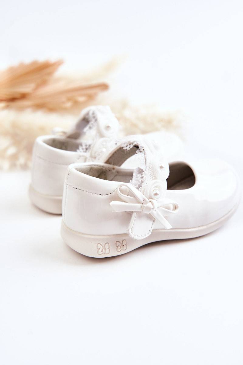 vaikiškos balerinukės su lipniais užsegimais su nėriniais baltos spalvos Evelyn